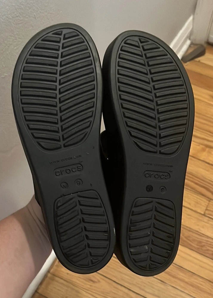 Crocs Women’s Brooklyn Low Wedge Sandals 9 Black . Condition is Pre-owned. Shipped with USPS Ground Advantage.