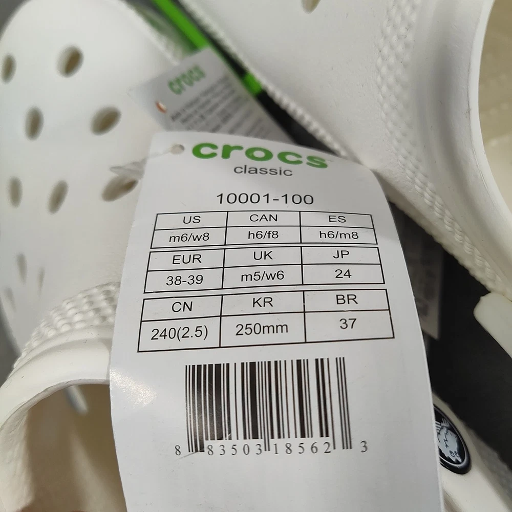 Crocs Women's Classic Clog Authentic Slip-On Shoe- Style 10001-Size 8-White