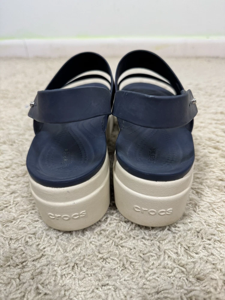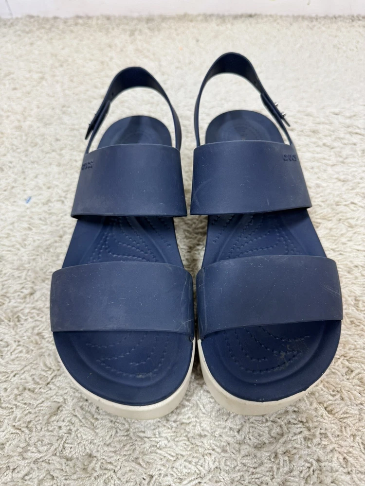 Crocs Women’s Navy Blue Brooklyn Wedge Platform Comfort Sandals Shoes Size 10