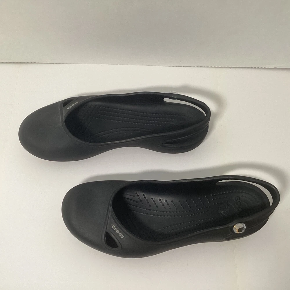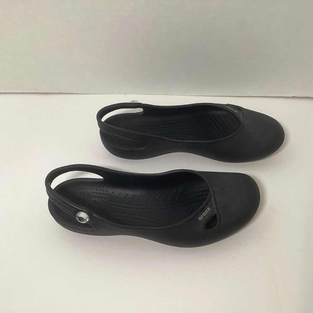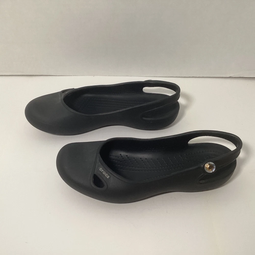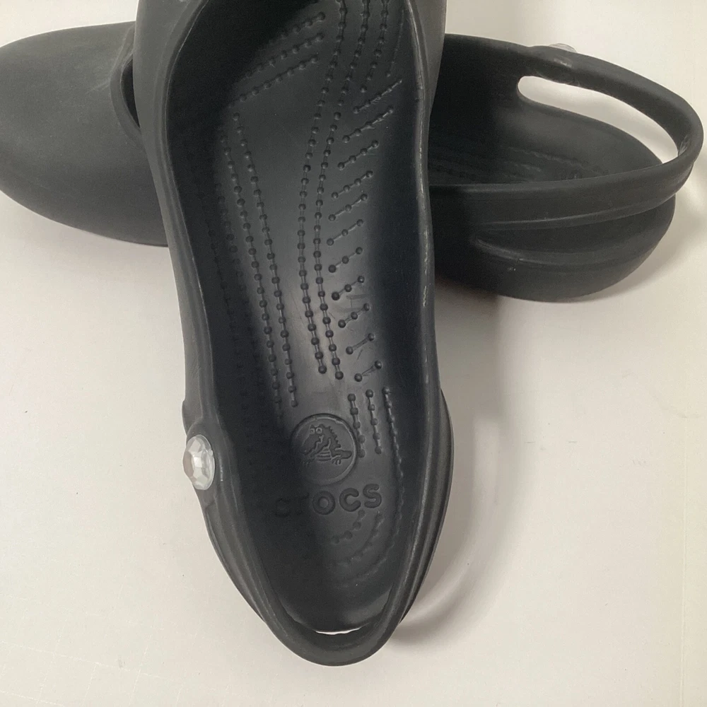 Crocs Women’s Size 7 Jayna Black Ballerina Flats Slingback Loafers Rhinestone Pre-owned in fair condition. Please see photos for condition, quality and size details. Please note small nick noted in pictures and wear on soles. 197C2/4/02253