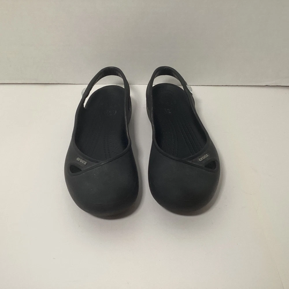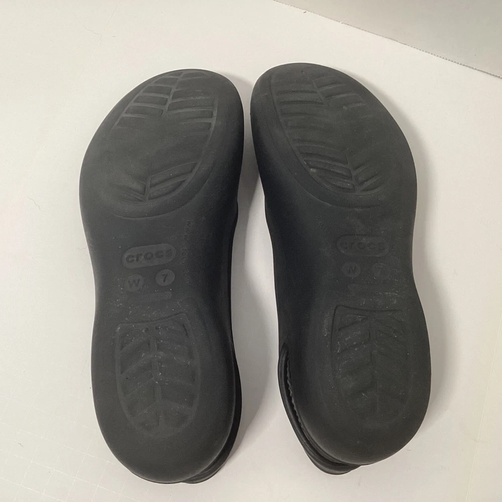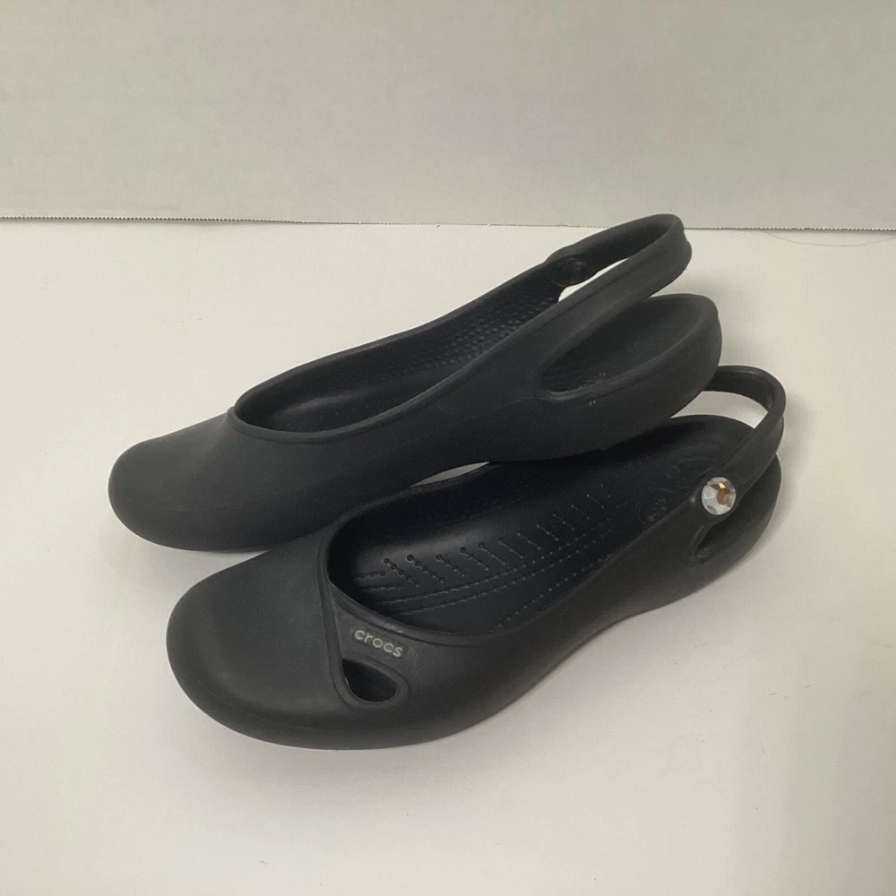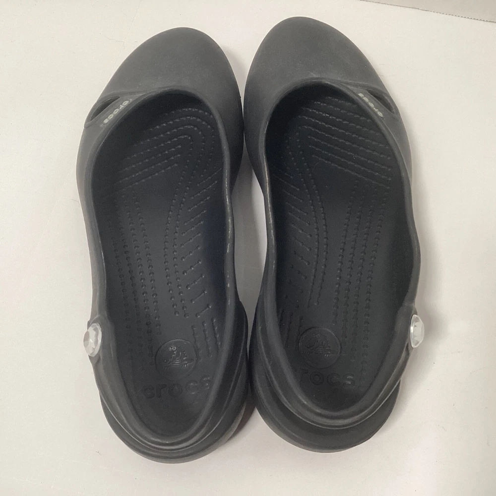 Crocs Women’s Size 7 Jayna Black Ballerina Flats Slingback Loafers Rhinestone Pre-owned in fair condition. Please see photos for condition, quality and size details. Please note small nick noted in pictures and wear on soles. 197C2/4/02253