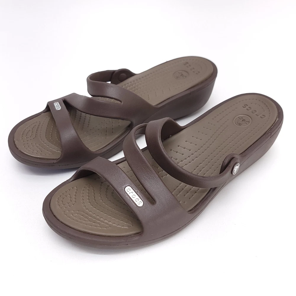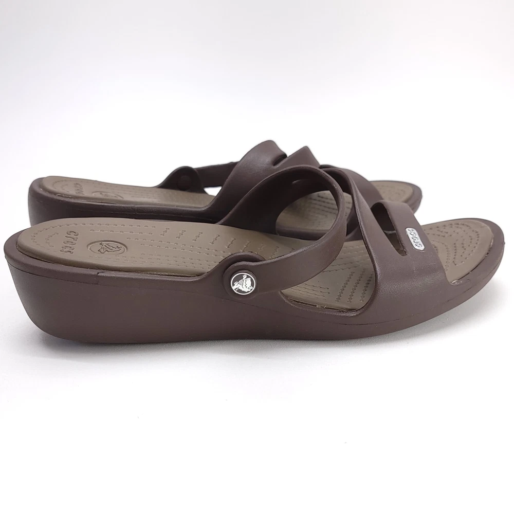 Crocs Womens Swiftwater Brown Slip On Rubber Flats Size W 9 Strappy Sandals All Items are Packaged with care and shipped within one business day or sooner. Thanks for Stopping by!