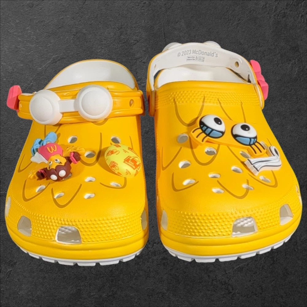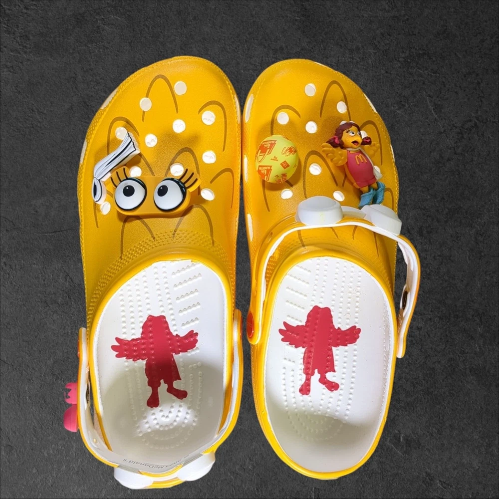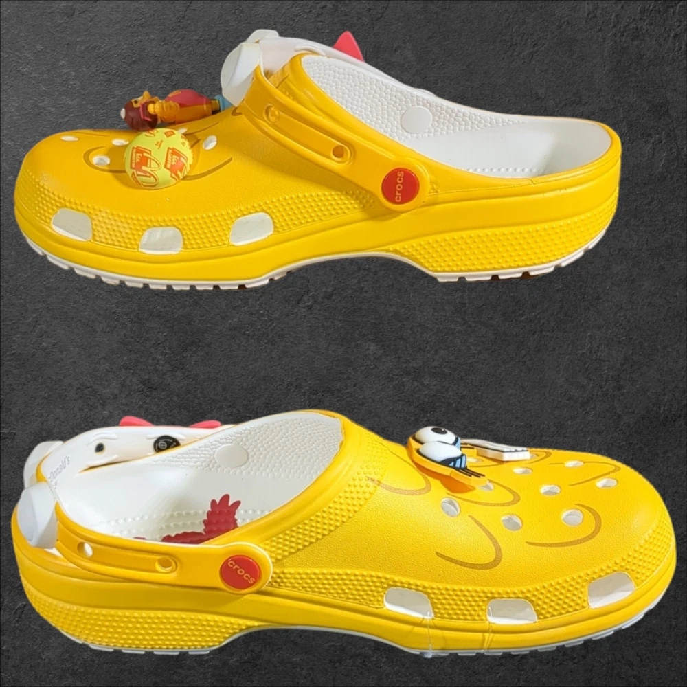 Step into comfort and style with the limited edition Crocs x McDonald's Birdie clog. A vibrant yellow synthetic upper is complemented by the iconic McDonald's Birdie character, making these clogs a unique addition to any wardrobe. Designed for both men and women, these size 10 (US) / 9 (UK) / 43 (EU) clogs are the perfect blend of casual and classic. The round toe design ensures a relaxed fit, while the cushioned insole and breathable lining offer all-day comfort. Whether you're out for a casual stroll or traveling, these waterproof and lightweight clogs are designed to keep your feet supported and dry. The durable synthetic outsole is designed to handle various surfaces, making these clogs ideal for fall, spring, and summer wear. If you like this item and would like to see more like it, click the link below to check out our store. 523 Supplier LLC | eBay Store Return Policy : Customer satisfaction is important to us. Good communication is crucial for eBay sales. Before leaving feedback, please notify 523 Supplier LLC about any concerns using eBay messaging. Items must be returned in original condition, with tags if applicable. Buyers are responsible for return postage . If the wrong item was shipped, we will refund the entire amount including return shipping.