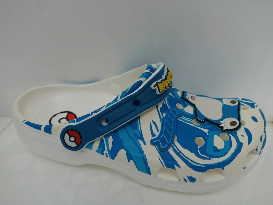 Crocs x Pokemon 'Snorlax' Classic Clog 210245-90H in US Men sizes 6 and 7 are now available in a new, unopened box. These multicolored slip-on sandals feature a synthetic upper and outsole material, making them comfortable and durable for everyday wear. Perfect for Pokemon fans looking to add a fun and unique touch to their footwear collection.