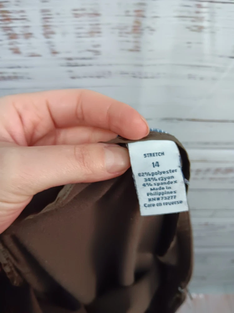 This Croft & Barrow skirt is designed for women in size 14, featuring a brown plaid pattern and an A-line style. Made from a blend of polyester, spandex, rayon, and wool, the skirt is lightweight and stretchy, ideal for travel, casual, or business occasions. It has a zip closure and falls to a midi length, with a woven fabric type ensuring quality. Easy to care for, this versatile garment adds a touch of sophistication to any outfit.