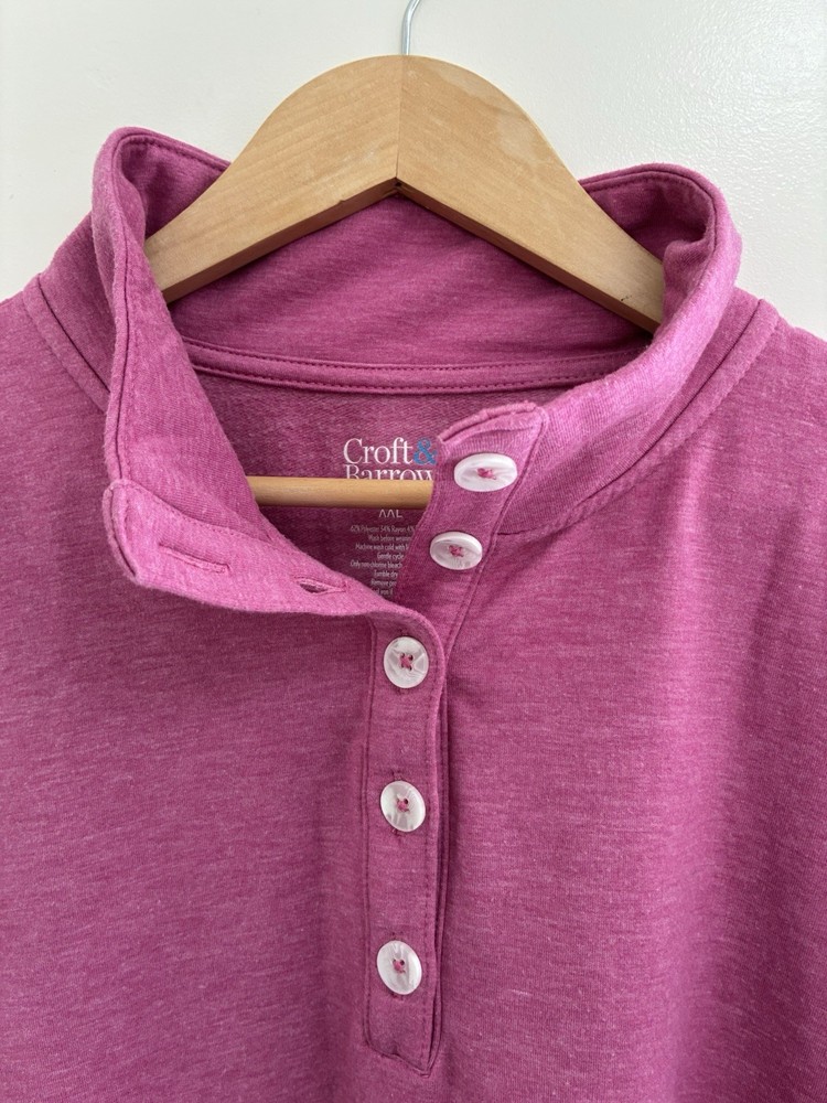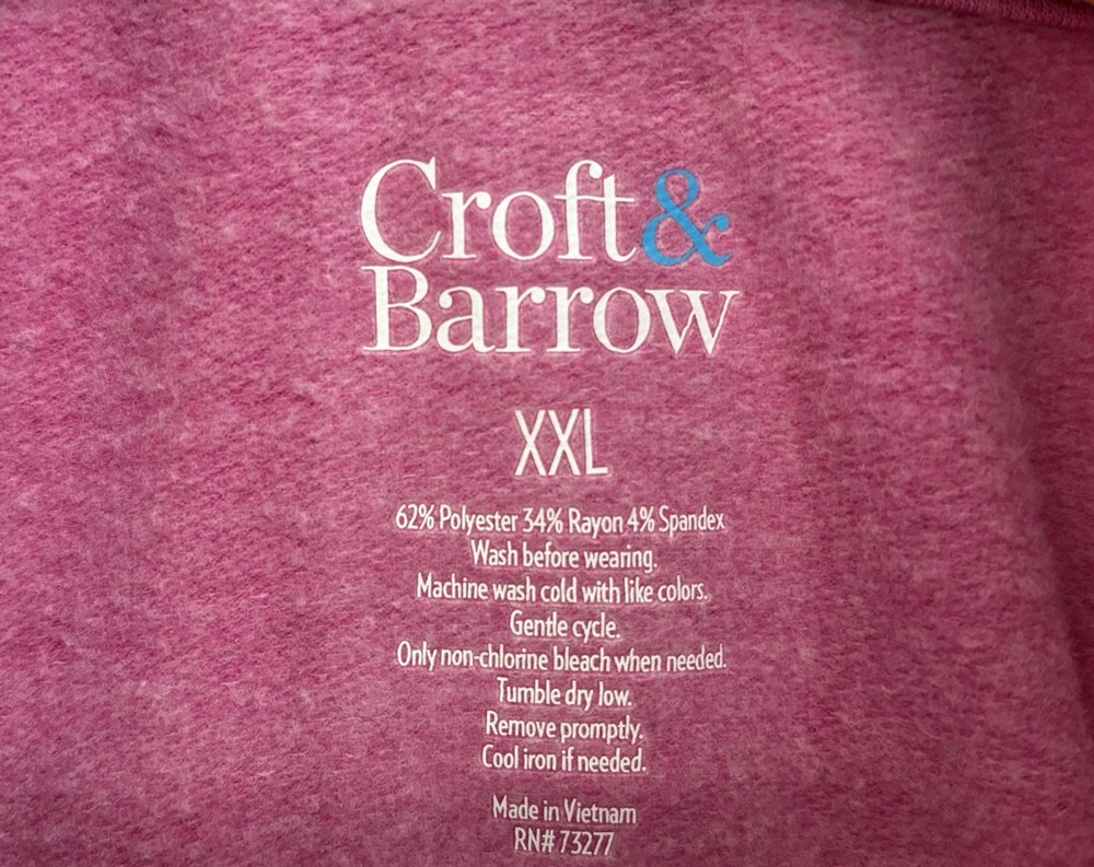 Croft & Barrow Women's Solid Pink Cozy Fleece 1/4 Button Long Sleeve Pullover XXL. Condition is pre-owned. Smoke free, pet free home. Shipped via USPS Ground Advantage. In fair condition. There are bleach stains all along the sleeve. Free of rips.