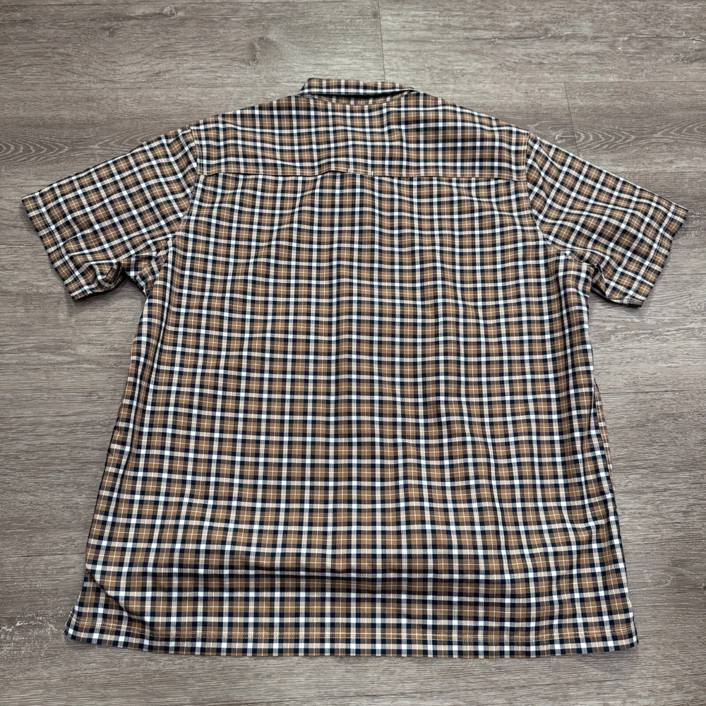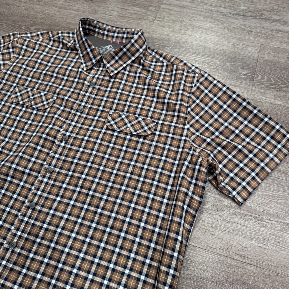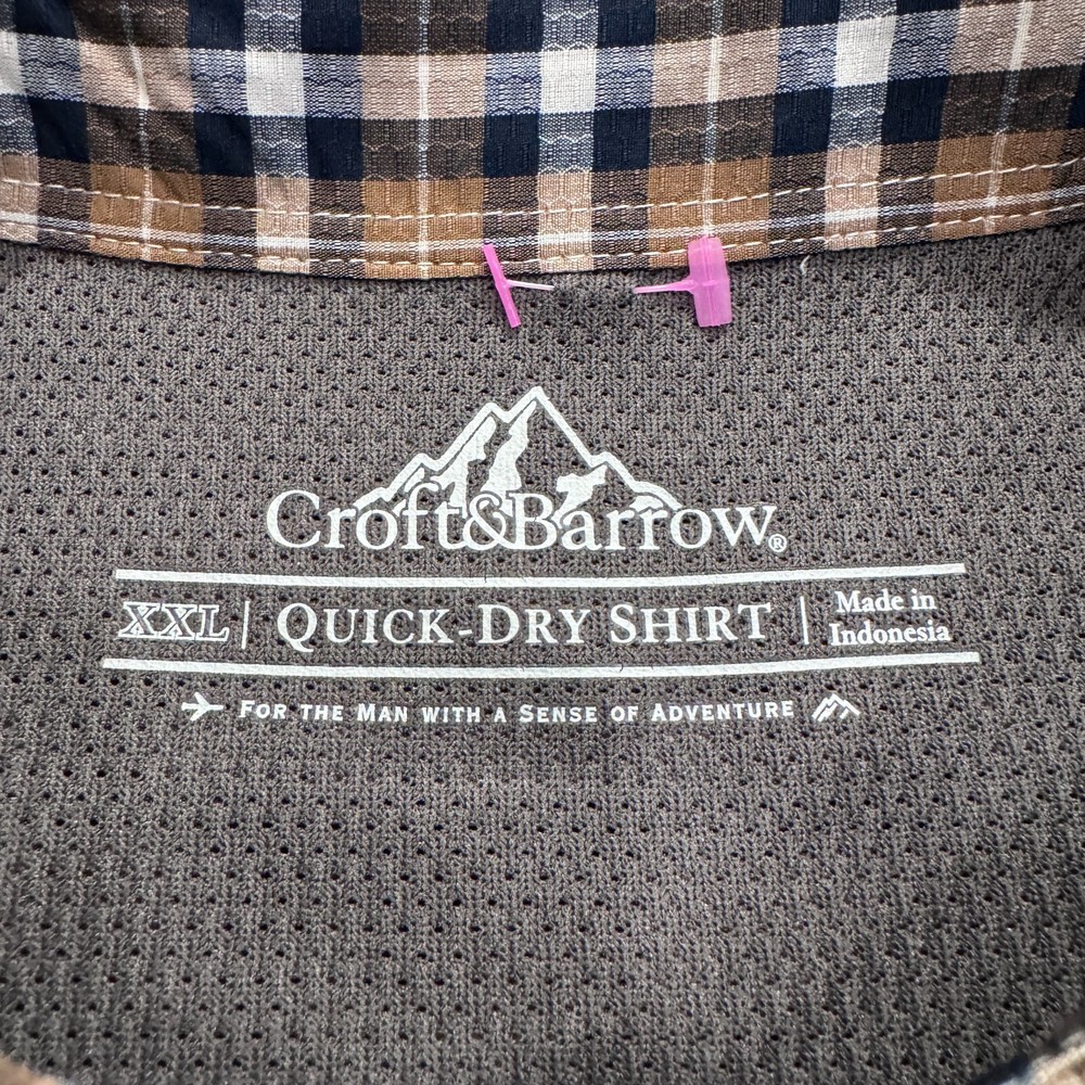 Garment Care: Machine Washable Type: Button-Up Accents: Vent Closure: Button Size: 2XL Fit: Regular Neckline: Collared Size Type: Regular Theme: Outdoor, fishing, camping, hiking Department: Men Sleeve Length: Short Sleeve Color: Multicolor Collar Style: Point Material: Polyester Pattern: Plaid Brand: Croft & Barrow Occasion: Casual, Travel, Workwear Fabric Type: Microfiber Features: Quick Dry