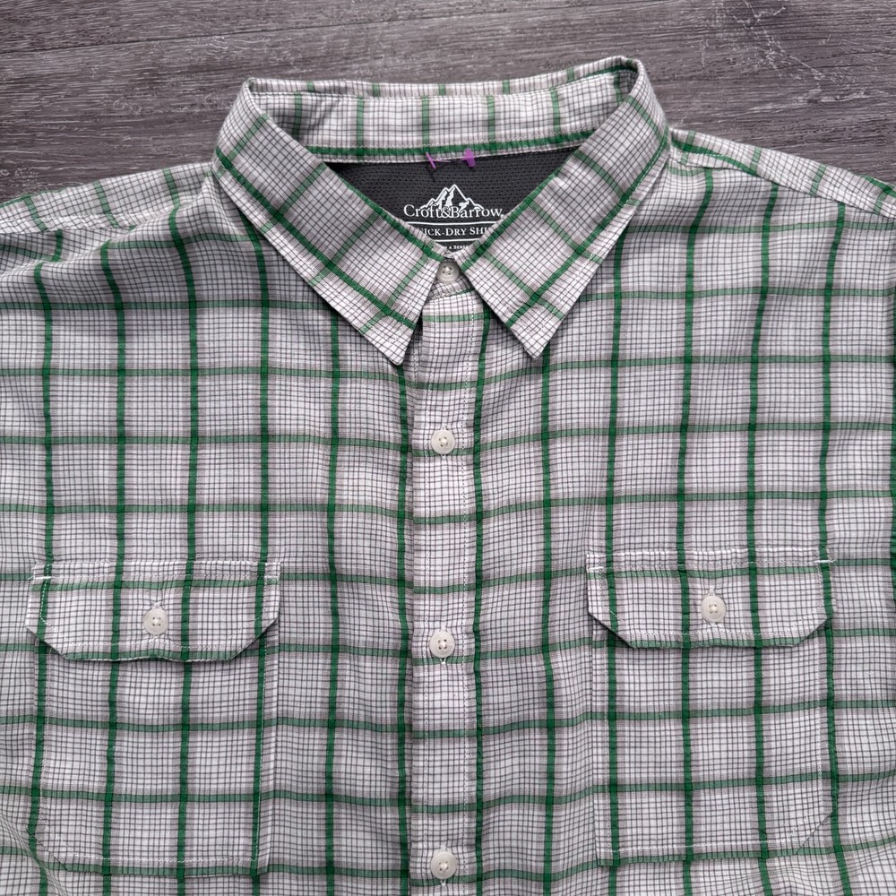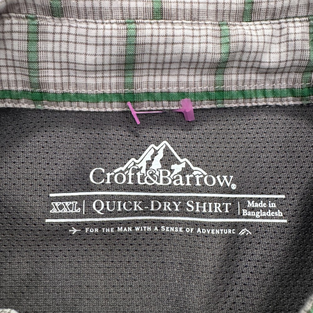 Color: Multicolor Neckline: Collared Closure: Button Department: Men Size: 2XL Collar Style: Point Fit: Regular Type: Button-Up Brand: Croft & Barrow Pattern: Plaid Accents: Vent Sleeve Length: Short Sleeve Features: Quick Dry Theme: Outdoor, fishing, camping, hiking Occasion: Casual, Travel, Workwear Garment Care: Machine Washable Material: Polyester Size Type: Regular Fabric Type: Woven