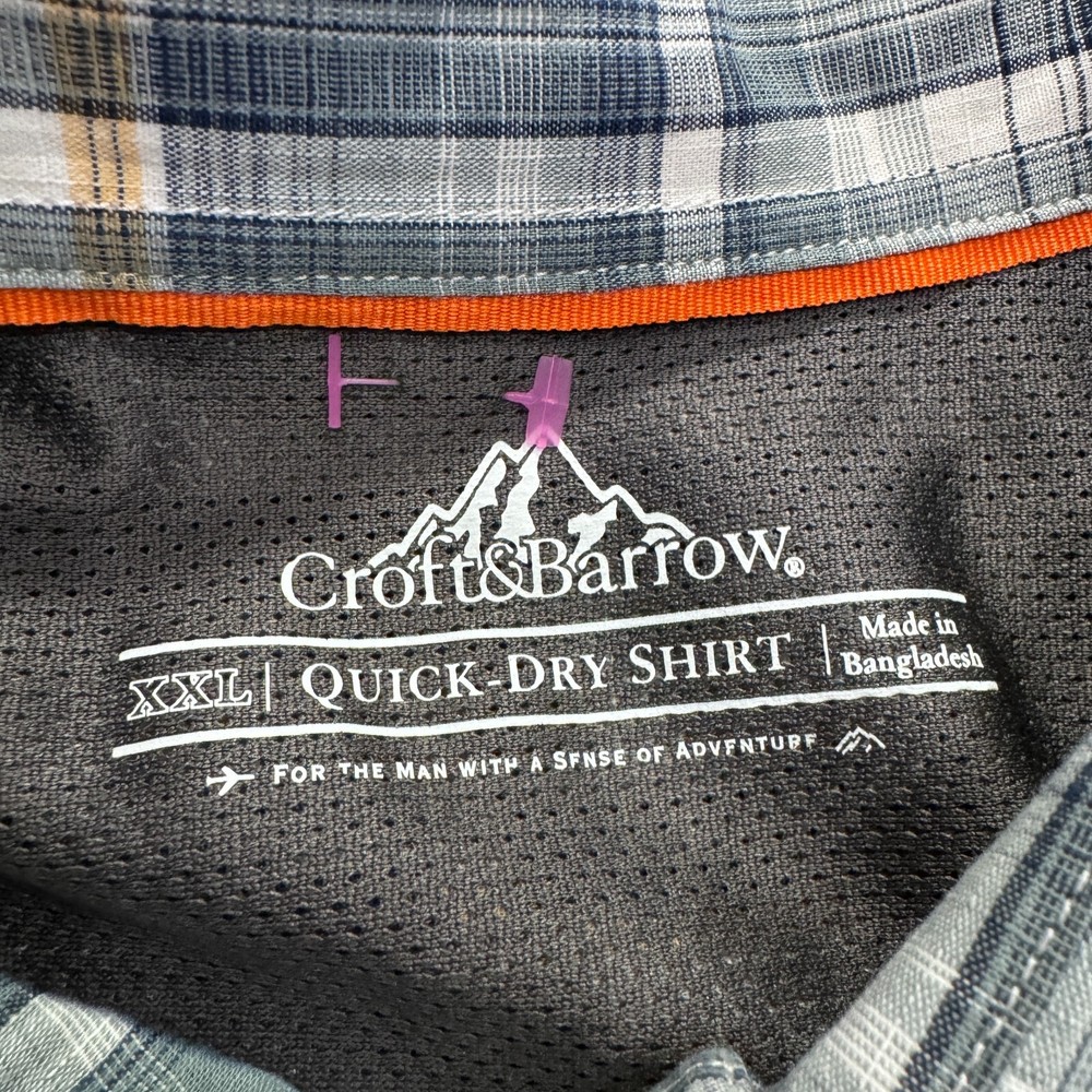 Theme: Outdoor, fishing, camping, hiking Type: Button-Up Brand: Croft & Barrow Occasion: Casual, Travel, Workwear Features: Quick Dry Pattern: Plaid Material: Polyester Department: Men Fit: Regular Sleeve Length: Short Sleeve Size: 2XL Fabric Type: Microfiber Closure: Button Neckline: Collared Accents: Vent Color: Multicolor Size Type: Regular Collar Style: Point Garment Care: Machine Washable