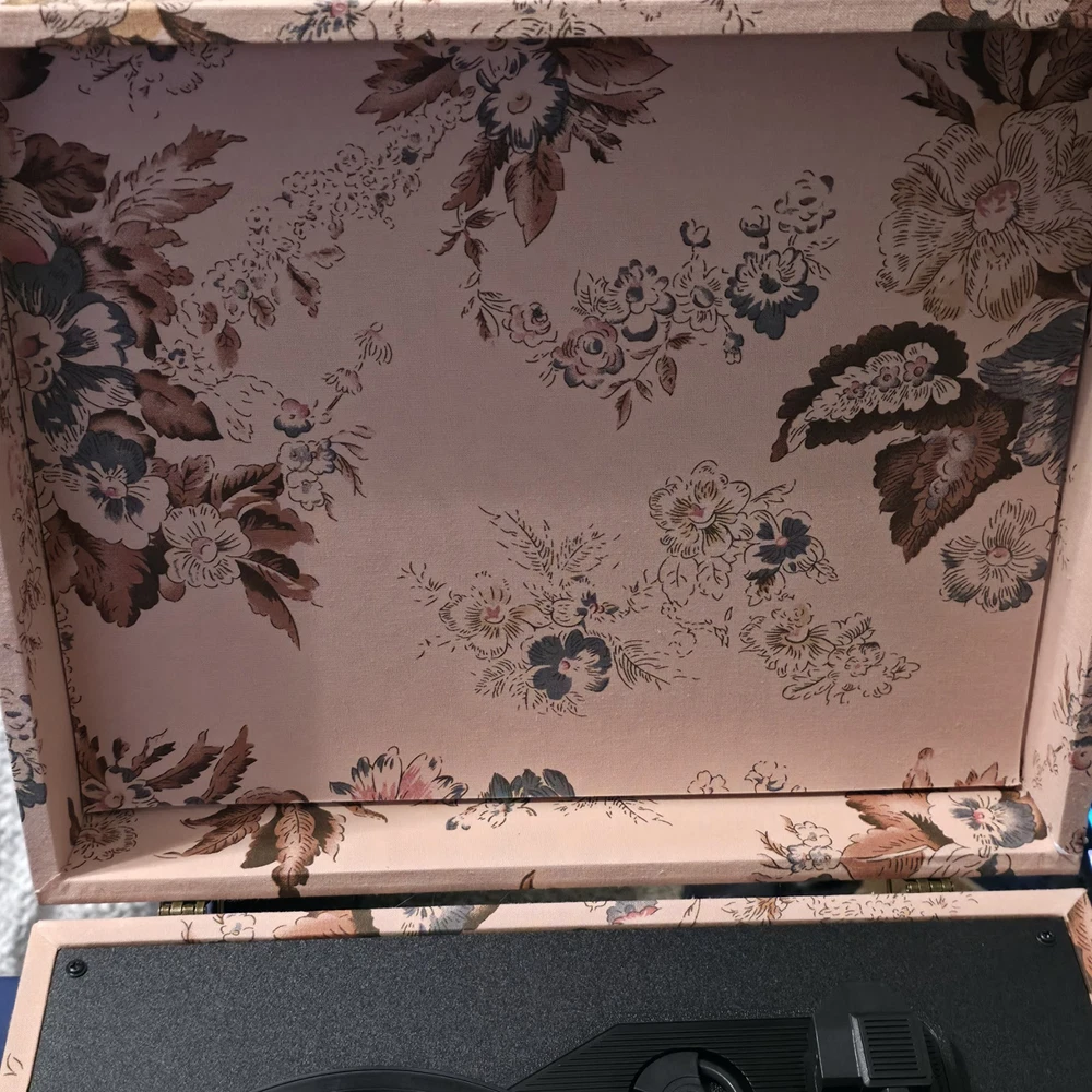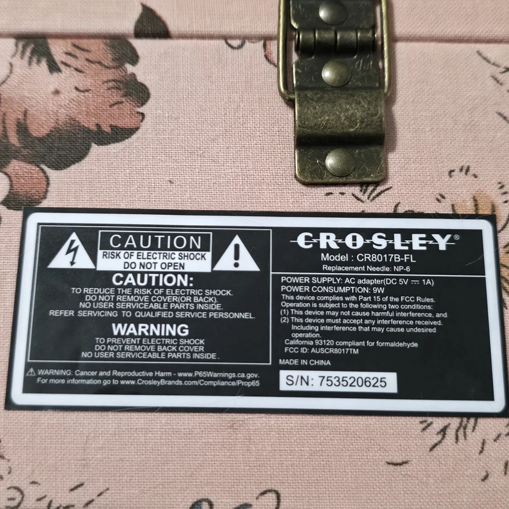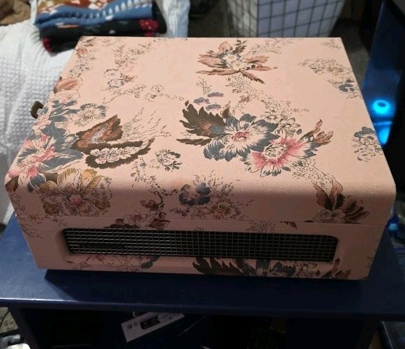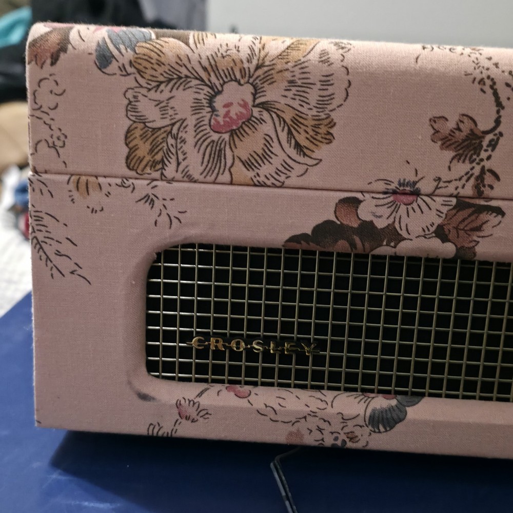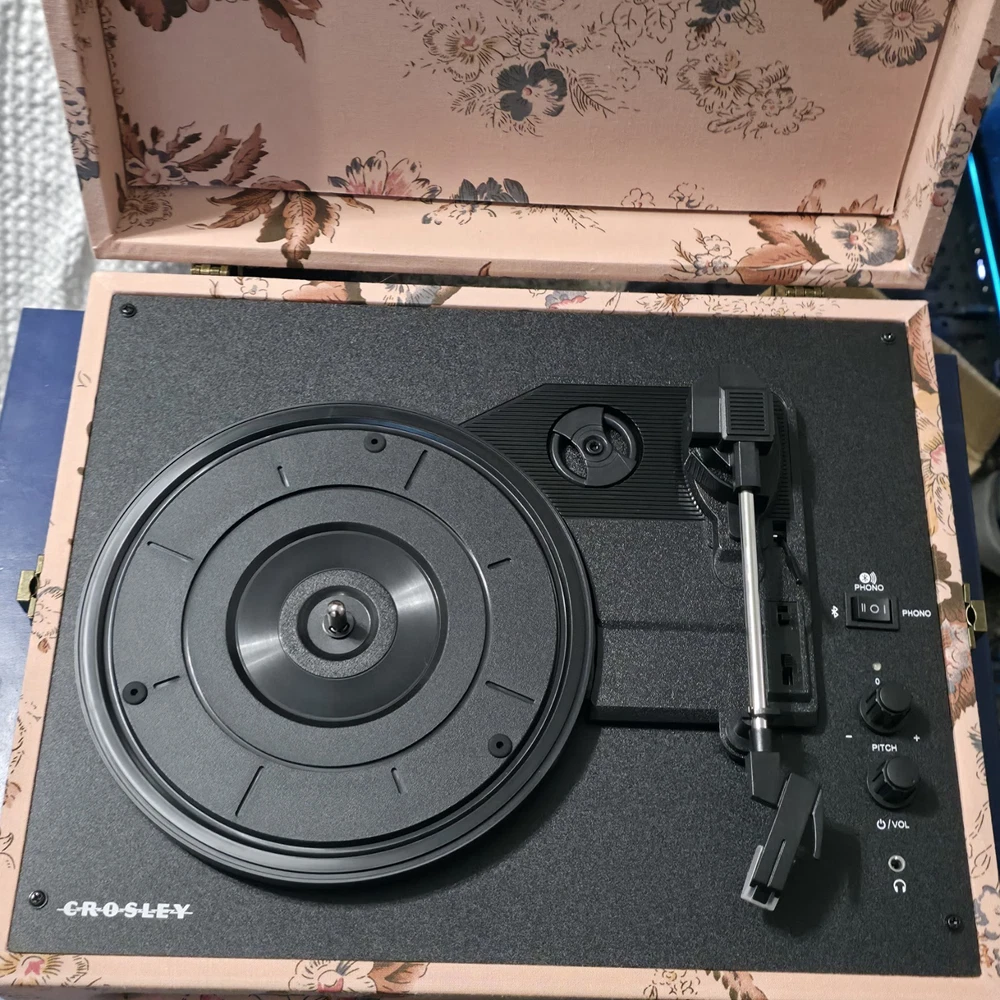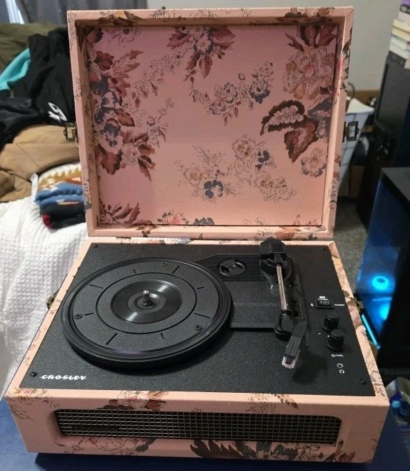 STILL HAS THE PLASTIC ON THE NEEDLE! NEW NEVER USED, NO BOX COMES WITH POWER CORD. The Crosley CR8017B-FL Voyager Vintage Portable Vinyl Record Player with Bluetooth is a stylish and functional home audio component perfect for music lovers. With its floral color and retro design, this record player adds a touch of nostalgia to any living space. It features Bluetooth connectivity, a headphone jack, and belt drive for high-quality sound and ease of use. The speed settings of 33 1/3, 45RPM, and 78RPM ensure versatility in playing a variety of vinyl records, while the audio outputs offer convenience with a headphone jack and AUX connection. Whether you're a collector or a casual music enthusiast, this Crosley Voyager model is sure to delight your ears.