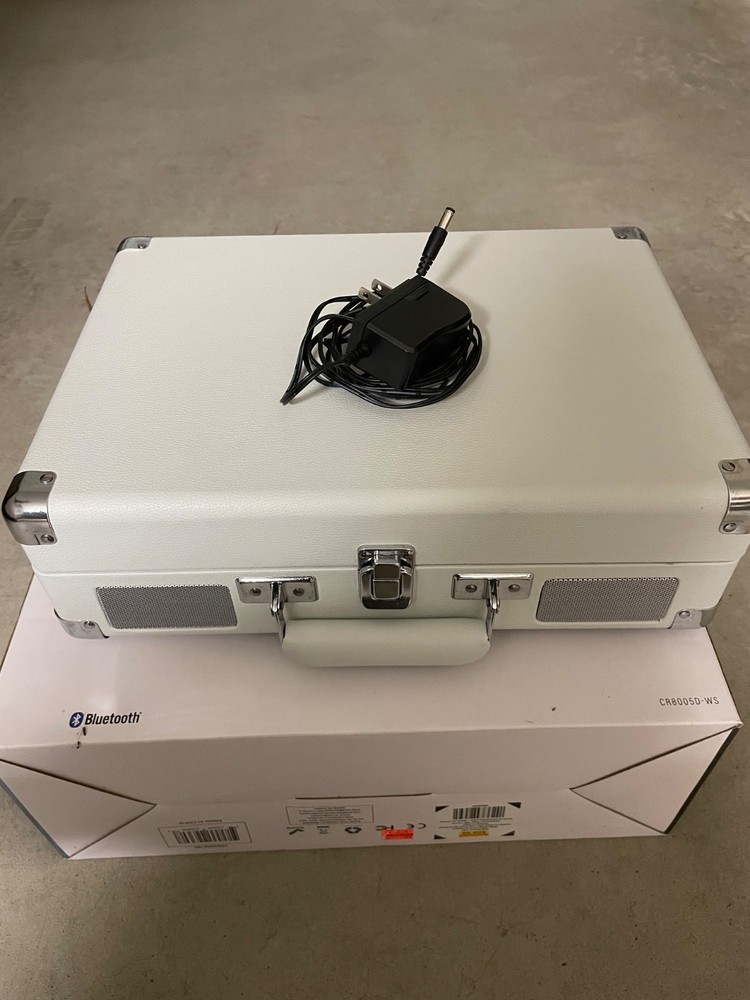 The Crosley Cruiser Deluxe is a fantastic portable turntable—sleek, compact, and packed with features like Bluetooth and RCA outputs. The white finish looks sharp, and it comes ready to play with cords, warranty, and even two vinyls. Perfect for vinyl lovers who want quality sound in a stylish, space-saving design. Highly recommend!