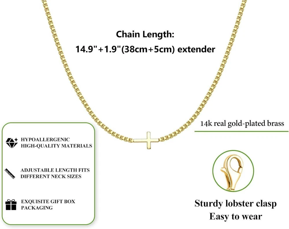 NEW! Trendy Fashion Faith Christian Religious Cross Pendant Necklace Minimalist Dainty Mini Simple Chain! - 14k Gold plated, Nickel-free, Lead-free - Chain Length:15". + 2"extension. - Ideal Gift. THANK YOU!