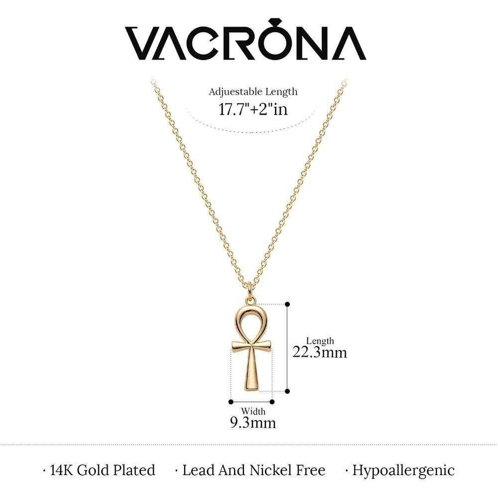Jewelry Meanings:The evil eye is a popular amulet symbolizing a protection against bad luck.Classic and everyday-worthy, this necklace executes an elegant touch of sparkle that's subtle enough for everyday wear and for fancier occasions alike. Jewelry Details:Metal:18k gold plated over high quality brass.Weigt:About 4g.Package:Packing with a beautiful gift box,and the size is 3.0*2.7*0.7 inches. Jewelry Maintenance:1) Avoid direct contact with heat, or expose under the sun.2) Before showering, take out the accessories and keep it in a safe place.3) Avoid solvents or chemicals like perfume or soap. Dry it with a clean towel if gets wet.4) Clean in a secure location, not the rim of a sink where a piece may slip down the drain.5) Use only a soft brush, never sharp or hard objects, to remove dirt or particles. Warm Tips for you:Please check size reference images before ordering.Our necklace may be slightly different due to the display.★ 90-Day Money Back Ensure or Exchange,Ensure you a pleasant shopping from . Don’t hesitate to add it to your cart and buy Now!! Size Information: Chain length 18" + 2" extension; pendant: 9.3 mm wide, 22.3 mm high Meaningful Design: This gold ankh necklace represents life and spirituality; its unique and intricate design makes it a striking addition to any jewelry collection Premium Materials: Crafted from 14K gold plated, hypoallergenic, and nickel-free materials, ensuring comfortable wear for sensitive skin Ideal for Presenting: This exquisite jewelry is suitable for any occasion—daily wear or formal events; it makes a thoughtful offering for any adult woman, such as your mom, sister, daughter, best friend, or lover; at , we craft modern, stylish, and minimalist jewelry that can be combined with other accessories for a unique look Durable & Easy to Maintain: Designed to last, with tarnish-resistant and sweat-proof properties; to maintain its shine and longevity, avoid exposure to cosmetics and clean gently with a soft cloth