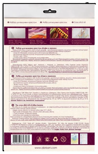 Wonderful and exquisite Cross stitch kit Coffee beans from Ukraine. Will be an excellent gift for any occasion. It's very extremely bright and beautiful cross stitch designs. Let the work done according to our scheme with the motifs of Cross stitch kit, needlework kit, Cross stitch designs, needlepoint kit, cross stitch pattern, Counted Cross Stitch, modern cross stitch, hand embroidery, diy cross stitch, home wall decor embroidered on canvas decorate your home and create a feeling of comfort and tranquility. Your Cross stitch kits Coffee beans include 14 count Aida fabric, threads MOULINE Weber Handarbeit (26 colors), needle for embroidery and instructions are in English. The Cross stitch kit contains all necessary materials for embroidery: - 14 count Beige Aida fabric; - threads MOULINE Weber Handarbeit (26 colors); - embroidery needle; - grayscale scheme for cross stitching with color symbols. - English instruction. The size, cm: 40x54 Number of colors: 26 Technique: counted cross stitch When buying any kit, we give a NICE GIFT from our store. Attention! Frame not included embroidery kit. This product is Made in Ukraine. This is not a Chinese product! IMPORTANT! This is a DIY KIT, not a completed work. The kit contains all necessary materials for embroidery: canvas, thread, needle, scheme, instruction. Before start work we recommend read the instruction.