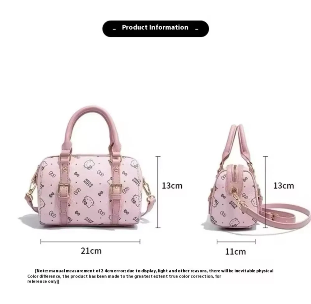 This charming crossbody bag features the beloved character Hello Kitty on a pink leather exterior. With a zip closure and detachable strap, this bag is not only stylish but also practical. The adjustable cross-body strap and lightweight design make it perfect for everyday use. The bag is designed for women and can be used for any occasion. Its cartoon theme adds a touch of playfulness to any outfit. The bag also features a zipper accent, adding a touch of sophistication. This bag is a must-have for any Hello Kitty fan or anyone looking for a stylish and practical crossbody bag.