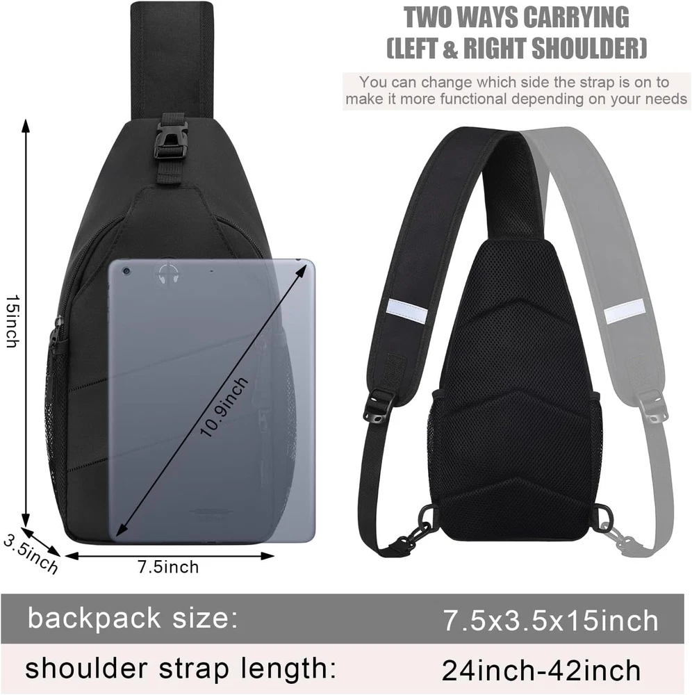 【Adjustable Strap For Both Sides】Our bags have one D-ring on each side of the bottom, and a detachable shoulder strap buckle. You can attach the strap for easy access on your left or right shoulder, reducing the strain of carrying your bag for a long time. The strap can be extended up to 42 inches to accommodate different body sizes and you can adjust the length to your comfort. 【Well Organized- Multi-pockets】You don’t have to waste time searching for things in a cluttered bag! We have 2 front zipper pockets and a buckle pocket that can fit your wallet, power bank, and tissue. The main pocket has enough space to fit all the essentials you need, it has 4 open pockets can easily store your iPad, cosmetics, or other essentials. Side mesh pocket can store anything you need for easy access. A special hook for hanging your keys! Have everything you need within reach! 【Durable & Waterproof Material 】Our chest bag are built to last with thick, durable, and abrasion-resistant fabric. The material is also waterproof and tear-resistant, whether you’re hiking through rough terrain or commuting in the rain, our backpacks will keep up with you, ensuring that your belongings stay safe and dry. The crossbody bags are designed to be lightweight and comfortable, making them perfect for long hikes or daily commutes. 【Comfortable and Safty】Designed with a soft, breathable mesh back panel which is especially important for people who are carrying heavy loads or hiking in hot and humid weather, it not only provides a comfortable carrying experience, but also isolates the items inside the bag from the skin, prevent discomfort caused by friction. The shoulder straps are designed with reflective strips to ensure you are more visible, so enjoy the fun of outdoor exploration without any worries. 【Practical And Pleasing】Are you looking for a classic and versatile cross body bag that never goes out of style? Pritent crossbody bags are an ideal product that combines fashion, convenience, and performance. The perfect stylish appearance easy to match various styles of outfits.And there is a hidden headphone hole on the front that provides easy access to your headphones, without the hassle of tangled cords. It’s a great way to stay connected to your favorite tunes while on the go! Product Description Adjustable Strap For Both Sides Our bags have one D-ring on each side of the bottom, and a detachable shoulder strap buckle. You can attach the strap for easy access on your left or right shoulder, reducing the strain of carrying your bag for a long time. The strap can be extended up to 42 inches to accommodate different body sizes and you can adjust the length to your comfort.