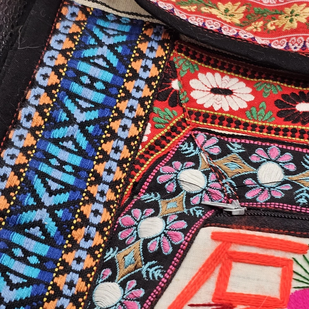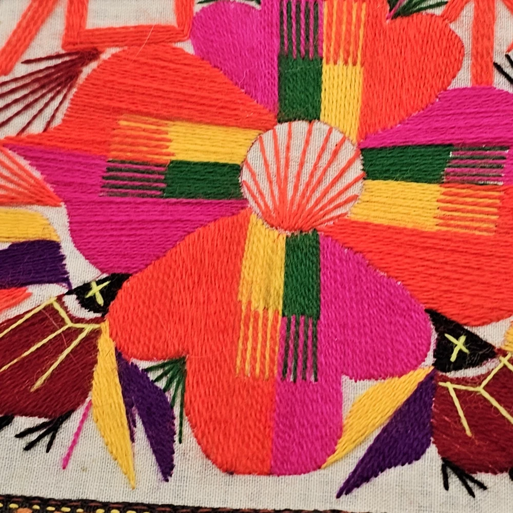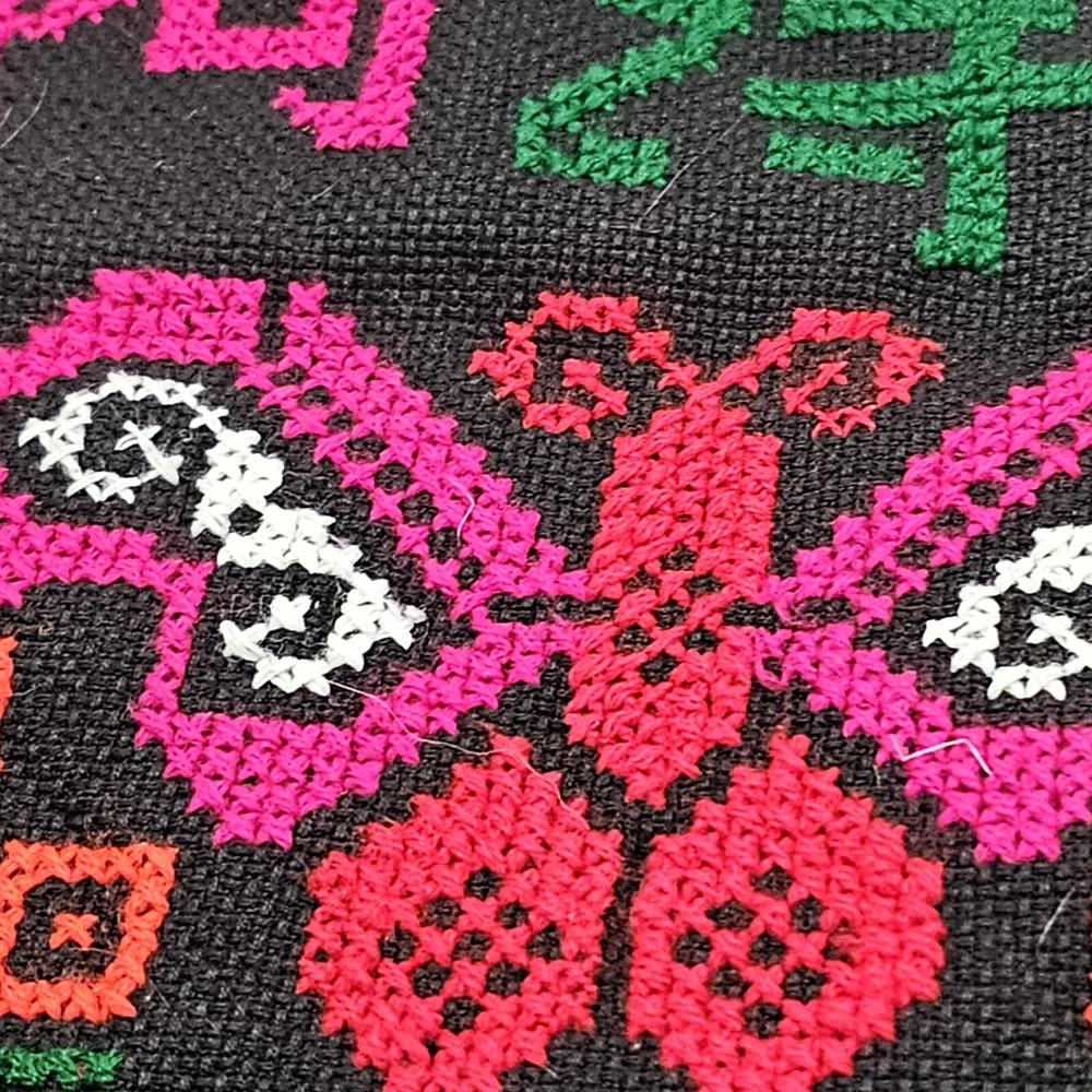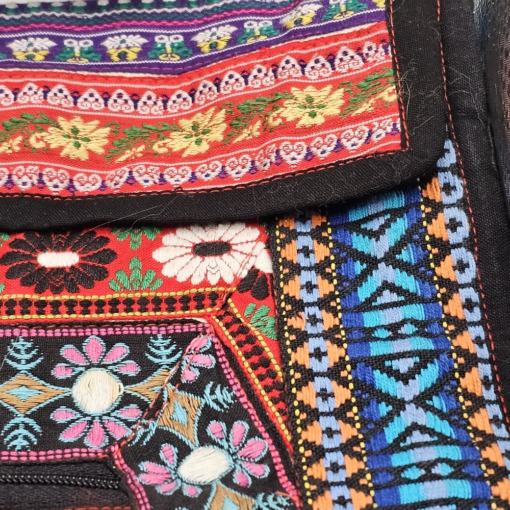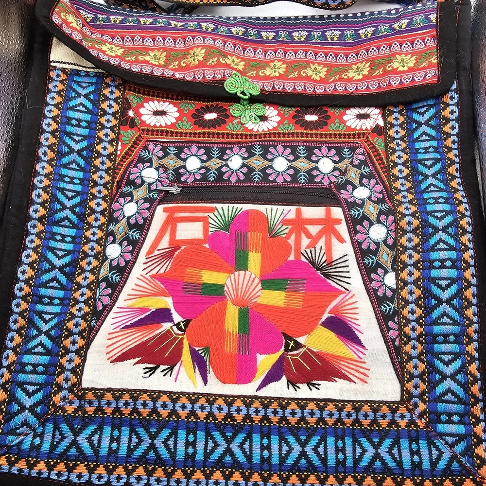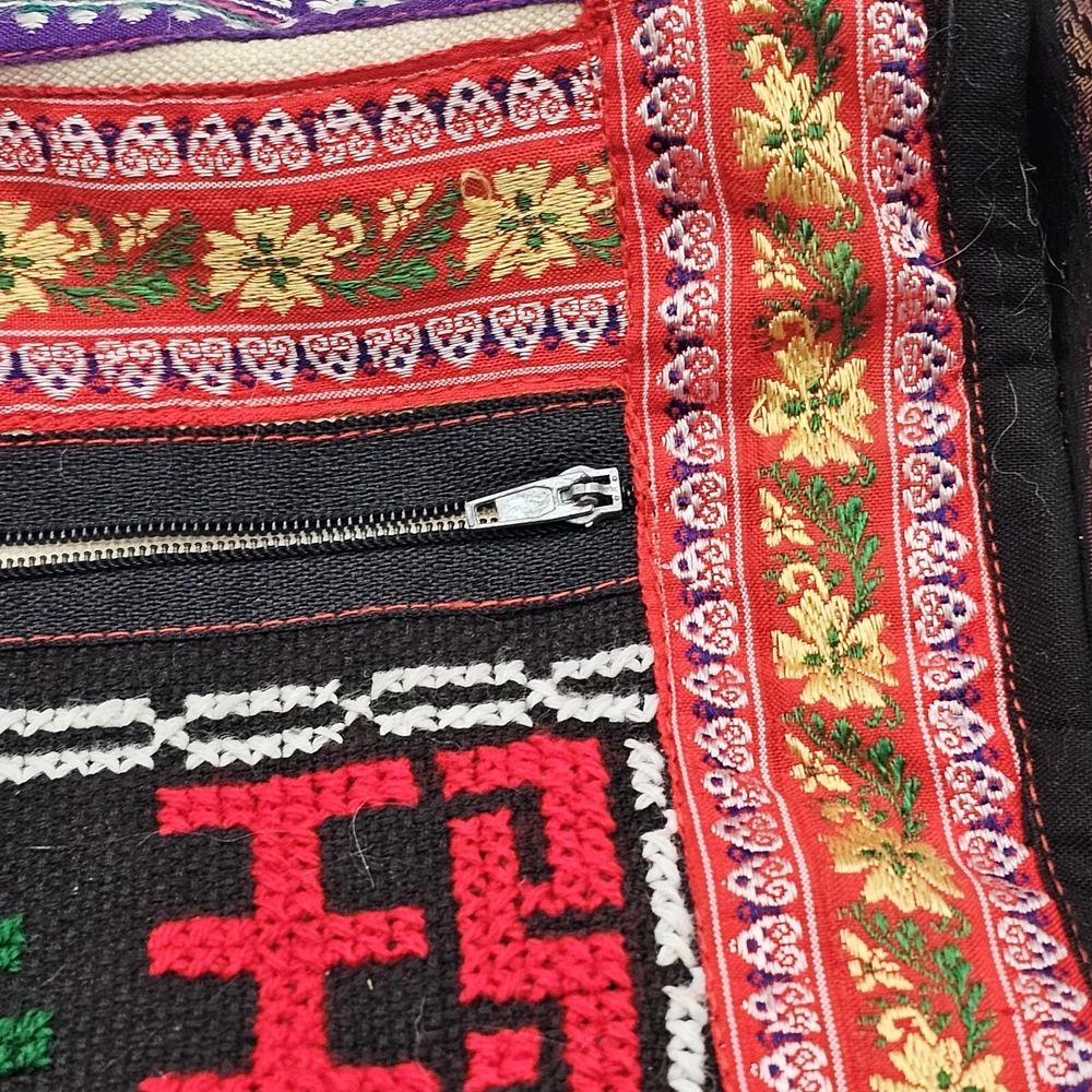 This is a handmade crossbody purse with a floral butterfly design, featuring a boho hippie style. The bag is made of a cotton blend exterior material and has a zip closure. It has a width and height of 12 inches, with a multicolor exterior. The bag is designed with a yarn art theme, perfect for women who appreciate artistic and unique accessories.