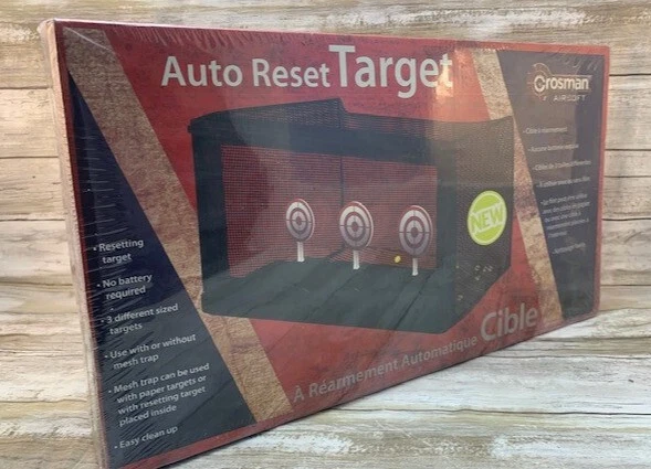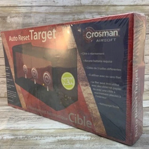 Crossman Airsoft Auto Reset Target, New In Sealed Box. 3 different sized targets, No batteries required. Can be used indoors or outdoors. Target ONLY, NO airsoft ammunition included. Mearuments 15.5" x 9" x 6". New in sealed boxed, in great condition ( see pictures for more condition details).