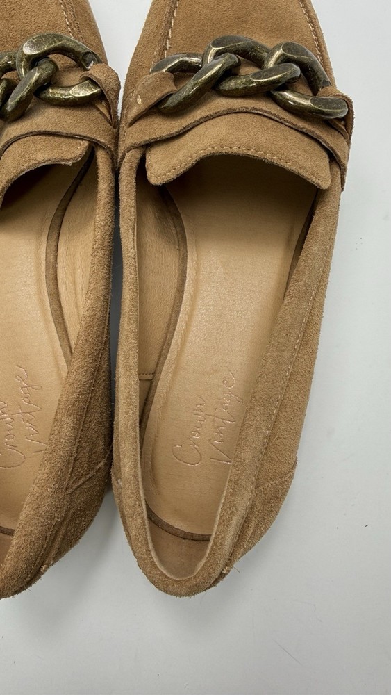 Crown Vintage Lastro Suede Loafers Tan Brown Chain Detail Size 9M Women’s Narrow , in me opinion fits 8.5 Decent condition Fast shipping from smoke free house