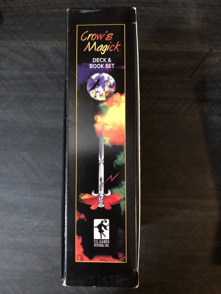 Crows Magick Tarot complete box set includes complete tarot deck with little white book, large guidebook (rare) and US games tarot spread sheet. Deck, guidebook and spread sheet are in amazing condition. Box that the set comes in shows some wear from storage. Tarot and oracle lover, decluttering, check out my other listings.