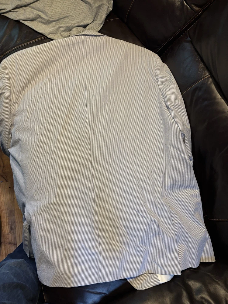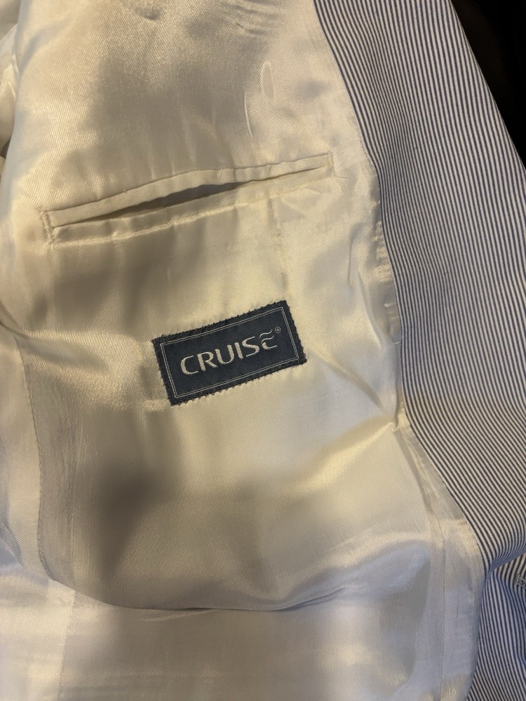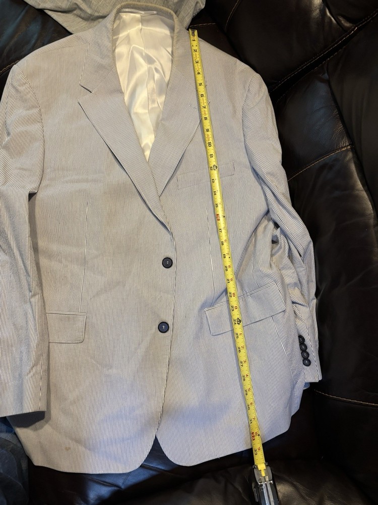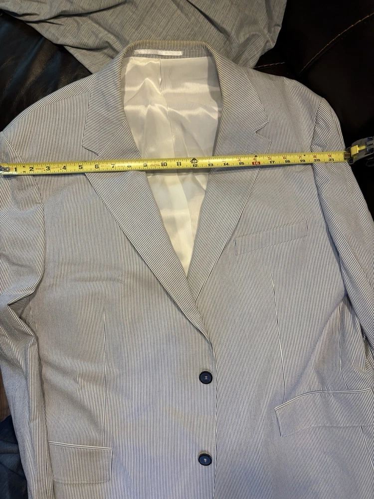 Pattern: Striped Type: Blazer Size Type: Regular Color: White Department: Men Fit: Regular Jacket/Coat Length: Regular Style: 1 Piece Brand: Blue Size: 40