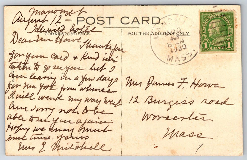 Thank you for visiting! Condition is typical for an old or antique paper postcard. There may be stains, creases or corner bumps. It may have writing on the front or back. See pictures for additional detail. This is a standard size postcard, 3.5" X 5.5". In stock, usually ships within 24 hours of your purchase. Please ask questions if you are unsure about anything. Our goal is for your complete satisfaction with the postcard and your experience.