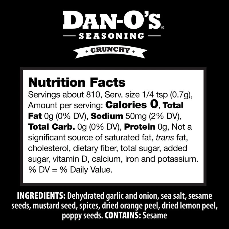 Cozy Electric Heating Blanket Faux Fur Soft Warm Throw Home Office Use 41.74 USD 44.88 USD Free shipping 7% off 10 Piece Glass Mixing Bowls Set W/ Lids Food Storage Prep Serving Dish New 19.31 USD 20.76 USD Free shipping 7% off Soft Heated Blanket Twin Sherpa Electric Auto Off 5 Heat Settings Comfortable US 44.07 USD 47.39 USD Free shipping 7% off Heavy Duty 40 Gallon Wheeled Industrial Tote W/ Drip Resistant Lid Storage New 26.84 USD 28.86 USD Free shipping 7% off Electric Heated Blanket Soft Warm Auto-Off 5 Heat Settings Safe Eco-Friendly New 41.74 USD 44.88 USD Free shipping 7% off Bagless Upright Vacuum 720W Lightweight Multi Surface Cleaner 25ft Cord New 55.15 USD 59.3 USD Free shipping 7% off Wet Dog Food Chopped Ground Dinner Beef Canned Adult Nutrition 4 Pack 22oz Cans 15.34 USD 16.49 USD Free shipping 7% off Professional Handheld Seed Spreader Bag Seeder 25lbs Capacity W/ Waterproof Bag 57.1 USD 61.4 USD Free shipping 7% off 300ct Baby Wipes Light Fresh Chamomile Hypoallergenic Soft Thick Resealable New 11.09 USD 11.92 USD Free shipping 7% off Prismatic Iridescent Christmas Snowflake LED Decoration Kids Room Indoor New 31.51 USD 33.88 USD Free shipping 7% off Oversized Outdoor Christmas Lights 17ft Waterproof Multicolored Bulbs Decor New 69.65 USD 74.89 USD Free shipping 7% off Aluminum Threshold Extender Easy Install Durable Sill Extension Hack Saw Cut New 26.59 USD 28.59 USD Free shipping 7% off Dan-O’s Crunchy™ Seasoning brings the flavor with this crunchy and savory seasoning blend that packs big flavor in every bite. Crunchy™ is so much more than your typical everything bagel seasoning. It combines the iconic ingredients from an everything bagel like poppy seeds, sesame seeds, onion, and garlic with the classic flavors of Dan-O’s Original Seasoning - like lemon peel, orange peel, and rosemary - to create a savory one-of-a-kind blend. Just like Dan-O’s Original, you can use it on Dan near anything and add a flavorful crunch to breakfast, lunch, and dinner! Yum Yum Get Ya Sum!® Dan-O’s Crunchy™ Seasoning brings the crunchy savory flavor of poppy seeds, sesame seeds, onion, and garlic to the classic Dan-O’s seasoning profile. Add Crunchy™ to any dish you want to add a Dantastic® crunch to. Try it on eggs, salads, salmon…we promise you’ll be saying Dan-O’s Crunchy™ Seasoning is similar to an everything bagel seasoning, but taken to the next level. This all-purpose seasoning combines the iconic ingredients from an everything bagel like poppy seeds, sesame seeds, onion, and garlic with the classic flavors of Dan-O’s Original Seasoning to create a savory one-of-a-kind blend. Just like Dan-O’s Original, you can use Crunchy™ all-purpose seasoning on Dan near anything from breakfast to dinner. You may also like 2-Piece Stretch Sofa Slipcover Durable Fabric Easy Install Machine Washable New 81.51 USD 87.64 USD Free shipping 7% off 10" AR500 Steel Shooting Target Durable Long Lasting Audible Visual Feedback New 58.37 USD 62.76 USD Free shipping 7% off Dining Chair Set 2 Slat Style 18 X 21 X 38 In Easy Assembly Sturdy Seating Home 148.06 USD 159.2 USD Free shipping 7% off Heavy Duty Steel Slat Bed Frame Platform Support Storage Space No Box Spring New 105.46 USD 113.4 USD Free shipping 7% off 6-Drawer Rolling Storage Utility Cart Trolley Organizer Home Shelf W/ Drawer 86.54 USD 93.05 USD Free shipping 7% off Grain Free Wet Cat Food Protein Rich Shredded Chicken Liver 5.3oz Pack of 12 New 52.64 USD 56.6 USD Free shipping 7% off Triplex LED Lantern 800 Lumens Rechargeable Solar Crank Emergency Light New 50.08 USD 53.85 USD Free shipping 7% off Card Storage Box 120 Holder W/ Lock Foam Dividers Portable Secure Protection New 53.88 USD 57.94 USD Free shipping 7% off 12 Piece Fine Ceramic Square Dinnerware Set Microwave Dishwasher Safe Elegant US 84.02 USD 90.34 USD Free shipping 7% off 7.5ft Patio Umbrella Outdoor Waterproof Crank Tilt Hexagon Garden Shade New 50.12 USD 53.89 USD Free shipping 7% off Rolling Laundry Hamper 2 Pack Plastic Basket W/ Pop Up Handle Wheels Storage New 97.13 USD 104.44 USD Free shipping 7% off 52 Ceiling Fan LED Light 5 Blade Indoor Outdoor Energy Saving AC Motor New room 165.63 USD 178.1 USD Free shipping 7% off