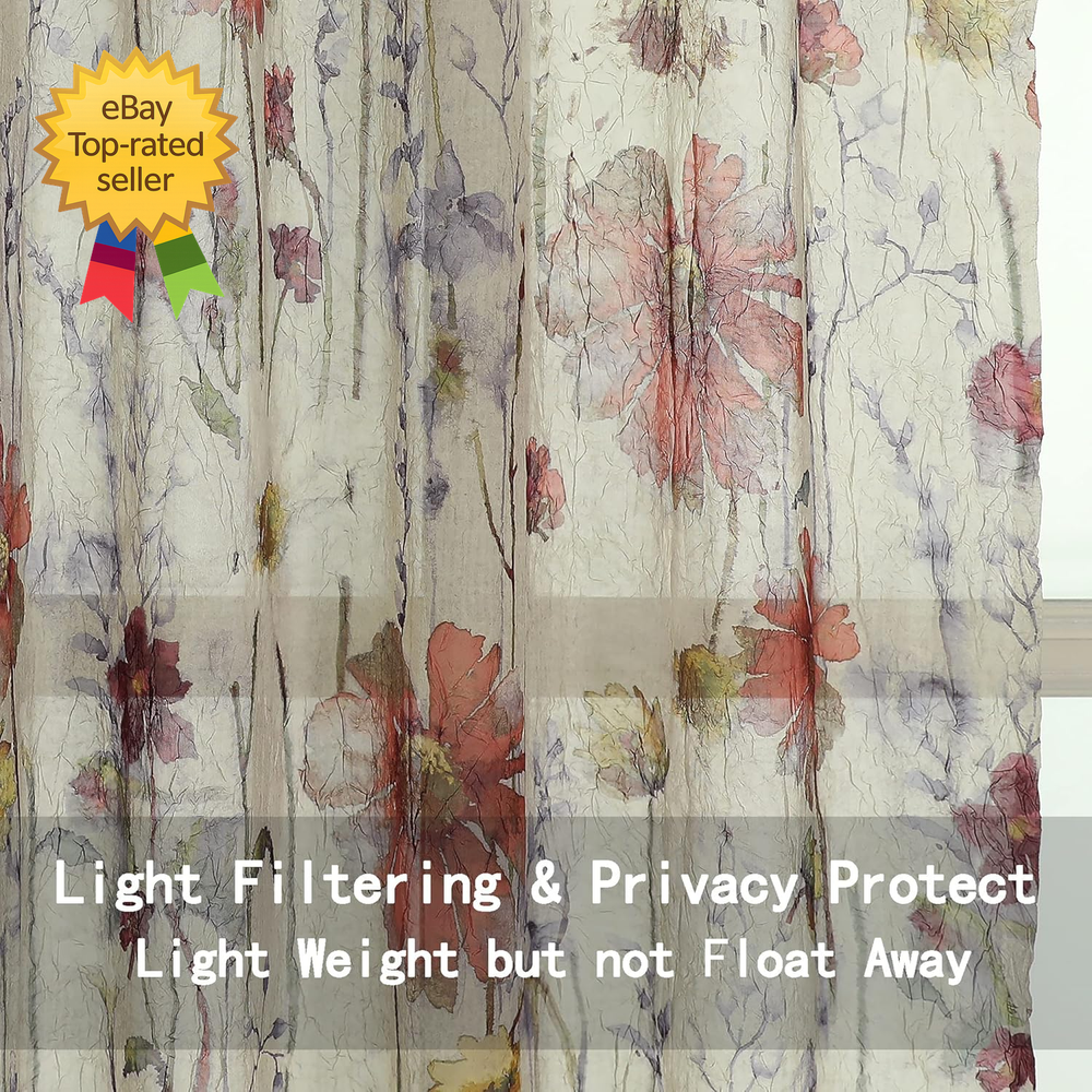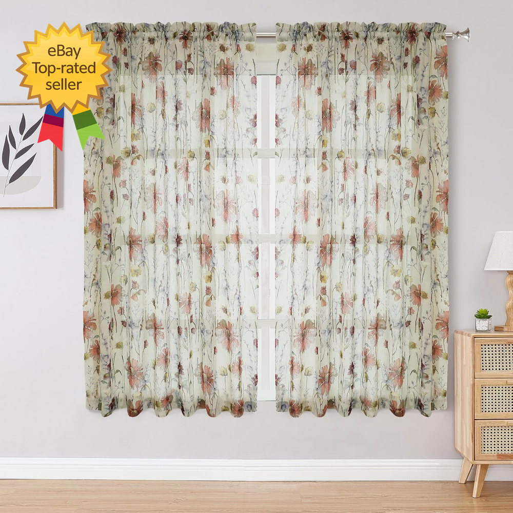 Store New Arrivals Add to Favorite View Feedback Contact Crushed Sheer Curtains 63 Inches Length 2 Panels SetSheer Floral Curtians Description Style Rustic Number of Items 2 Pattern Floral Package Weight 0.37 Kilograms Crushed Texture Sheer: Made from durable 100% polyester. Durable polyester fabric feels very soft, comfortable and lightweight. The special crushed craft work and crinkled texture make each panel to filter more sunlight. Our crushed sheer curtain panels can soften the light in your room while provide more privacy protection. Elegant Printed Design: Different from the pure color sheer curtains, clearly printed without any visual flaws so that will bring vibrant scheme to your room. Blossoming blue and pink floral with brown branches printed on ivory sheer drapery, was created by Lisa and Laura Studio. Contributes the fascination of watercolor to these curtain panels, providing a sense of rusticity and aesthetics. Soft the Light and Some Privacy: These semi sheer curtains allow just right amount of light comes in and also give you some privacy. These bedroom curtains are sheer enough to allow fresh air penetrate while weakening glaring sun. Gives a bright and airy feel to the rooms. perfect for living room, bedroom, dining room, family room, office, guest room, girls and kids room. Package Includes: 1 Set of 2 sheer curtains. Each panel is 42 inch wide by 63 inch length. Constructed with 1.5" header and 2" rod pocket which works well with tension rods or normal rods, easy to install and slide. Ideal layering piece for added privacy and light control. ABOUT US We offer the best prices around on high quality products. Our E-store includes media such as books, movies, music and games while offering electronics, toys, sporting apparel, clothing, tools, general home, garden items and more. SHIPPING We are always working hard to ensure your package arrives as soon as possible. Please understand that some factors like weather, high postal traffic, and the performance of shipping companies are outside of our control. We offer free shipping to the lower 48 states and ship within 2 business days of payment, usually sooner. We do not accept P.O. Boxes. Please provide a physical address. For shipping outside of the continental USA, we only use eBay's Global Shipping Program.The item is shipped to KY and then sent to the rest of the world. International customers are responsible for all duties and taxes. Continue to check out in order to calculate costs for shipping the item to your country. Messages regarding eBay's Global Shipping Program MUST be directed at eBay EXCLUSIVELY. RETURNS We offer a 30-Day Return Policy on items which you are not completely satisfied with. You have the option for a full-refund or an exchange of the item. No returns are available on items shipped outside of the USA. PAYMENT We accept PayPal. CONTACT US This page content is yet to come Please ad us to your favorite seller and visit again later Thank You CUSTOMER SATISFACTION We try our very best to make sure every customer is completely satisfied. If there's a problem, message us! We're happy to help.
