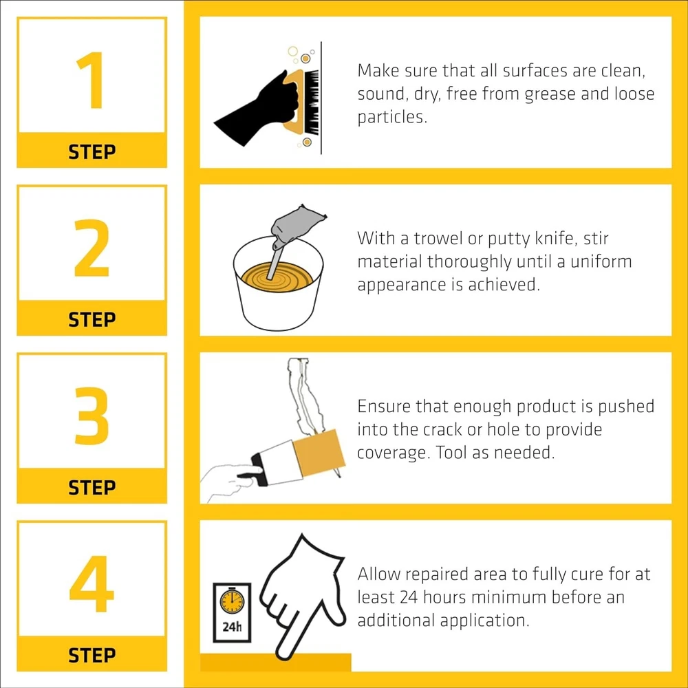 Cryl Gray Ready-Mix Concrete Patch - Textured Waterproof Repair Mix - 1 Qt ‹ › ‹ › ‹ › ‹ › ‹ › ‹ › ‹ › ‹ › Cryl Gray Ready-Mix Concrete Patch Textured Waterproof Repair Mix - 1 Qt Key Features: Easy Repairs: The ideal solution for effortlessly fixing cracks and spalls, restoring your property’s beauty with a seamless finish that blends with existing structures. Tough and Durable: Formulated to resist shrinking and cracking, this ready-to-use premixed cement patch provides exceptional adhesion and durability for walls, slabs, and pathways. Effortless Cleanup: Clean-up is a breeze as the acrylic-based formula requires only water – no need for harsh cleaners or chemicals. Environmentally Friendly: Complies with regulations regarding volatile organic compounds (VOCs), ensuring cleaner and fresher air quality. Simplified Application: Minimal preparation is needed. Use a putty knife or trowel to apply, and enjoy a quick setting time of just a few hours, with full cure in about a day. Why Choose Our Ready-Mix Concrete Patch? No tool shed is complete without this must-have ready-mix concrete and cement patch. The Cryl Gray Concrete Patch is your premier solution for unsightly cracks and spalls in foundations, patios, balconies, steps, masonry, driveways, sidewalks, and more. Designed for both vertical and horizontal surfaces, it effortlessly repairs imperfections with a professional finish. With just a putty knife or trowel and some water, you're on your way to a flawless repair in no time. Don’t let cracks mar the aesthetic of your property—choose our Cryl Gray Ready-Mix Concrete Patch to restore its grandeur. Order yours today and bring your surfaces back to life! Shipping Free & Fast Shipping - We offer free shipping to most of the USA with a normal delivery time of 3-7 days. However, due to the current situation, additional delivery time (up to 3 weeks) may be required for some items. Alternative Carriers - We may use alternative carriers (e.g. USPS, FedEx, UPS, etc.) to ensure your package arrives safely and on time. Due to the use of multiple carriers, we are unable to provide a tracking number automatically. Handling Time - Orders are processed and shipped within 1-2 business days of receiving cleared payment. Shipping Restrictions - Shipping to Alaska, Hawaii, Puerto Rico, Guam, and other US territories may incur shipping charges or delivery restrictions. Please contact us before ordering, or your order can be refunded/cancelled. State Restrictions - There may be restrictions based on your state of purchase. For example, certain items may not be shipped to California due to state regulations. Contact for Tracking Updates - If you require tracking updates or have any concerns about the delivery of your order, please feel free to contact us, and we will be happy to assist you. Return 30-Day Hassle-Free Returns - We want you to be completely satisfied with your purchase. If you are not, you can return the item within 30 days of receiving it for a full refund or exchange. Easy Return Process - To start a return, simply contact us and we will provide you with a prepaid return shipping label and detailed instructions. Restocking Fee - There are no restocking fees for returns. However, the buyer is responsible for return shipping costs if the return is not due to a seller's error. Refund Processing Time - Refunds will be processed within 5 business days of receiving the returned item in its condition. Payment We accept all major credit cards, PayPal, and Apple Pay for your convenience. Your payment information is secure and encrypted to ensure a safe and seamless transaction. Please complete your payment within 3 days of purchase to avoid any delays in shipping. Feedback Your feedback is extremely important to us. We strive to provide the best products and customer service possible. If you are satisfied with your purchase, please take a moment to leave us a positive review. If you have any concerns or issues with your order, please contact us before leaving negative feedback. We are committed to resolving any problems and ensuring your satisfaction. Contact Us If you have any questions or concerns, please feel free to out to our customer support team. You can contact us through the eBay messaging system. We are available Monday to Friday, 9:00 am to 5:00 pm EST, and we will do our best to respond to your inquiry within 24 hours. Buy it now and enjoy a pleasant shopping experience! MPN: Concrete_Patch_Repair Unit Quantity: 1 qt Suitable For: Repairs,Foundations,Patios,Balconies,Steps,Masonry,Driveways,Sidewalks,Concrete Theme: Concrete Patch Repair Type: Ready-Mix Composition: Acrylic Unit of Sale: Pack
