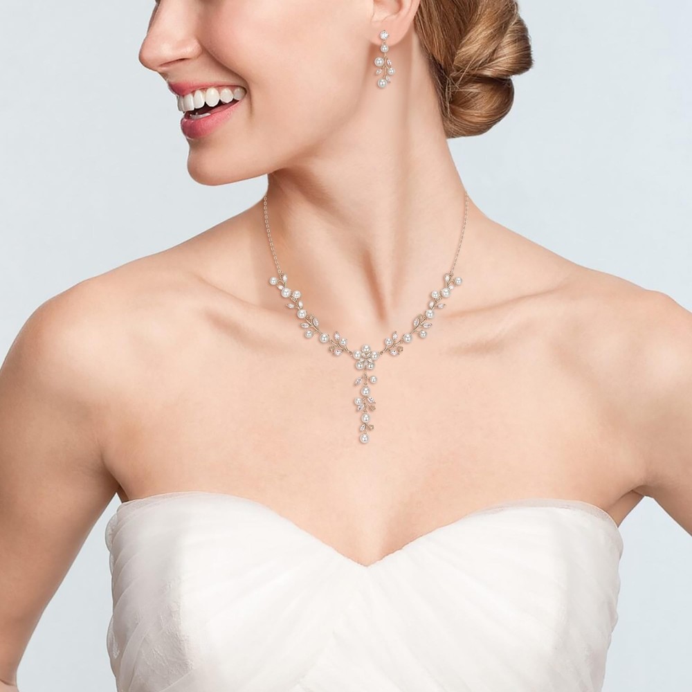 Crysdue Floral Bridal Jewelry for Wedding, Cubic Zirconia Wedding Jewelry Set for Bride Bridesmaid, Elegant Simulated Pearl Cluster Necklace Earrings Set for Wedding Prom Party Product Details Style: 13- silver Brand: Crysdue MPN: Does not apply UPC: Does not apply EAN: Does not apply Department : womens Date First Available : April 26, 2024 Brand, Seller, or Collection Name: Crysdue Metal: Brass Material: Brass Gem Type: Cubic Zirconia, Pearl Setting: Prong Setting Model number: 21000635-1 Crysdue ❤Inspiration Crysdue devoted to design and produce the most suitable jewelry for you; we select the quality of raw materials, create fashionable accessories. We will pay more attention to the comfort and safety of wearing the product, while pursue innovation. We have always insisted on choosing materials that are harmless to the human body. Give you a comfortable wearing experience.Our Women Jewelry Set was made of High Quality Cubic Zirconia, silver and gold plated, which ensures the polished surface is high sparkle and shine. Also Cubic Zirconia is well known as a substitute for diamond, due to its high hardness and great fire.