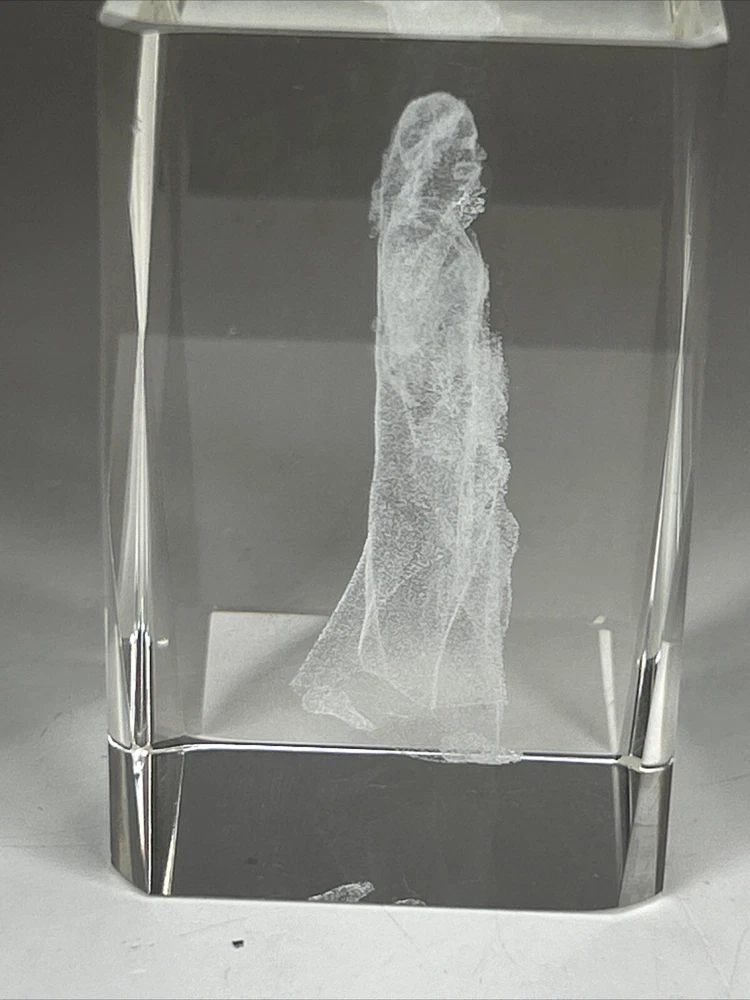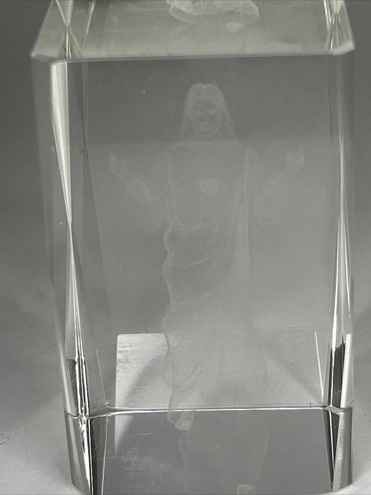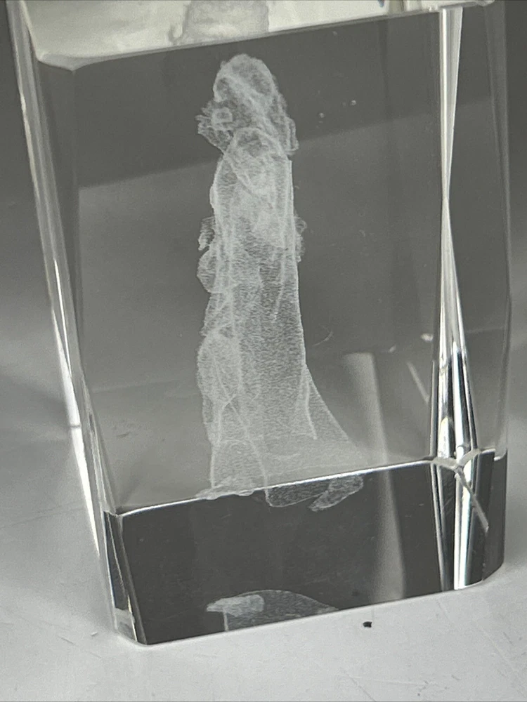 Crystal Art Glass 3D Laser Etched JESUS Cube Paperweight 3"x2"x2"
