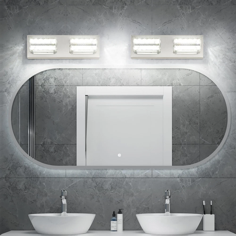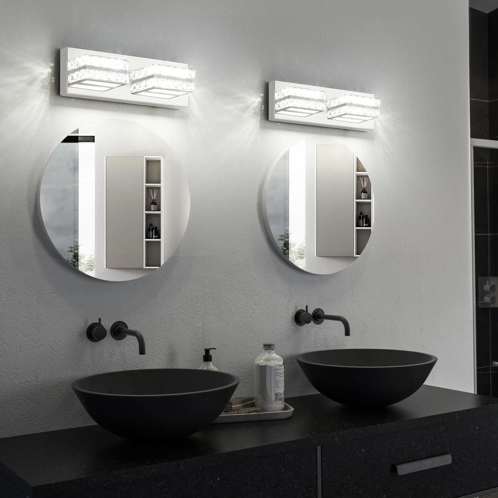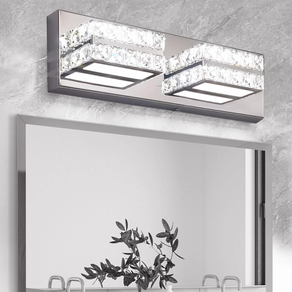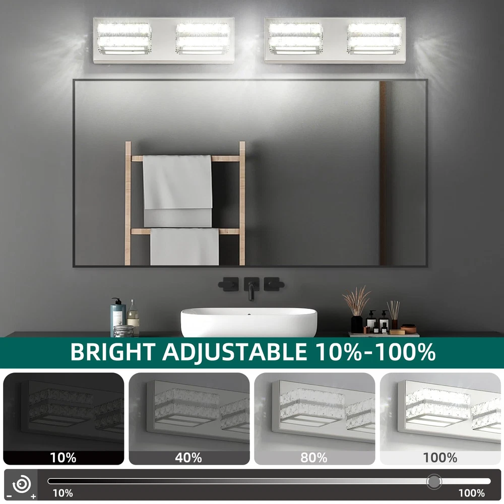 Modern Chrome Vanity Lights for Bathroom: Designed to be mounted directly above the mirror for a clean, integrated appearance. The Crystal vanity light with a chrome finish and crystal lampshade for a luxurious look. Dimmable Cold White 6000K Light: Provides a bright, clear illumination ideal for makeup application and grooming. When used with a dimmer, it is compatible with dimming. (Excluding dimmer) Dimensions: The crystal bathroom vanity light fixtures' dimension is L14.17'' x W4.3'' x H 3.3'', designed to fit most bathroom spaces. Application: Bathroom wall light fixtures offer flexible lighting for multiple rooms. They're perfect for bathrooms, but also enhance living rooms, dining rooms, hallways, and bedrooms. Easy Installation: The crystal vanity lights for bathroom come with all the necessary hardware for a quick and hassle-free setup. The over sink lighting fixtures have ETL certification and can be used with confidence. After Sales Support: 3 Years of return and exchange service support. If you have any problems, please let me know at any time, and we will reply within 24 hours and provide you with satisfactory solutions.