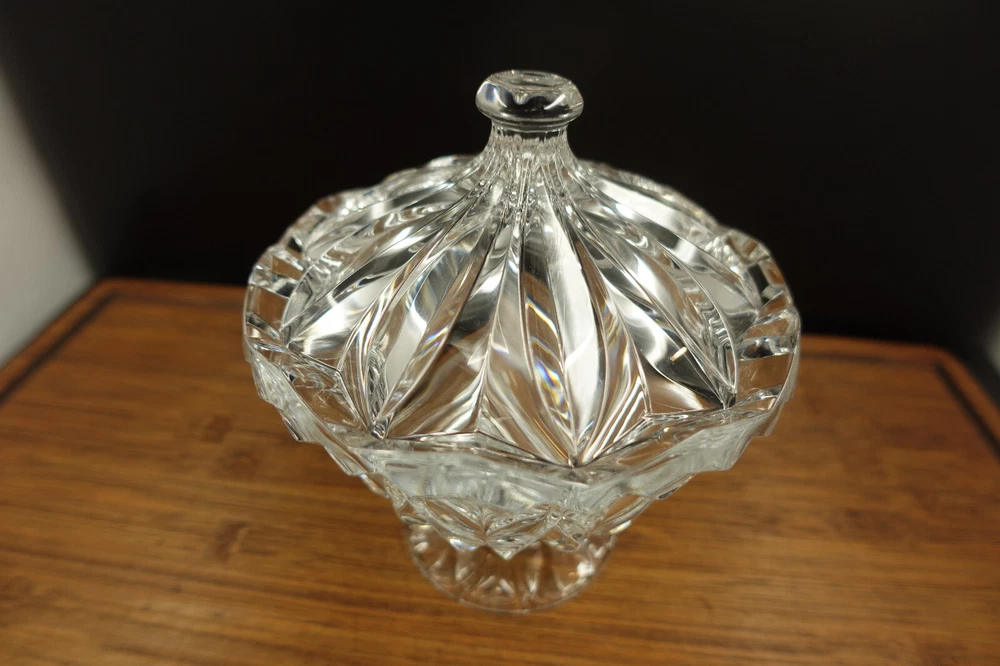 $ 5.2Leaded Glass Etched Candy Dish 9 Inch Wide 5 Inch Tall