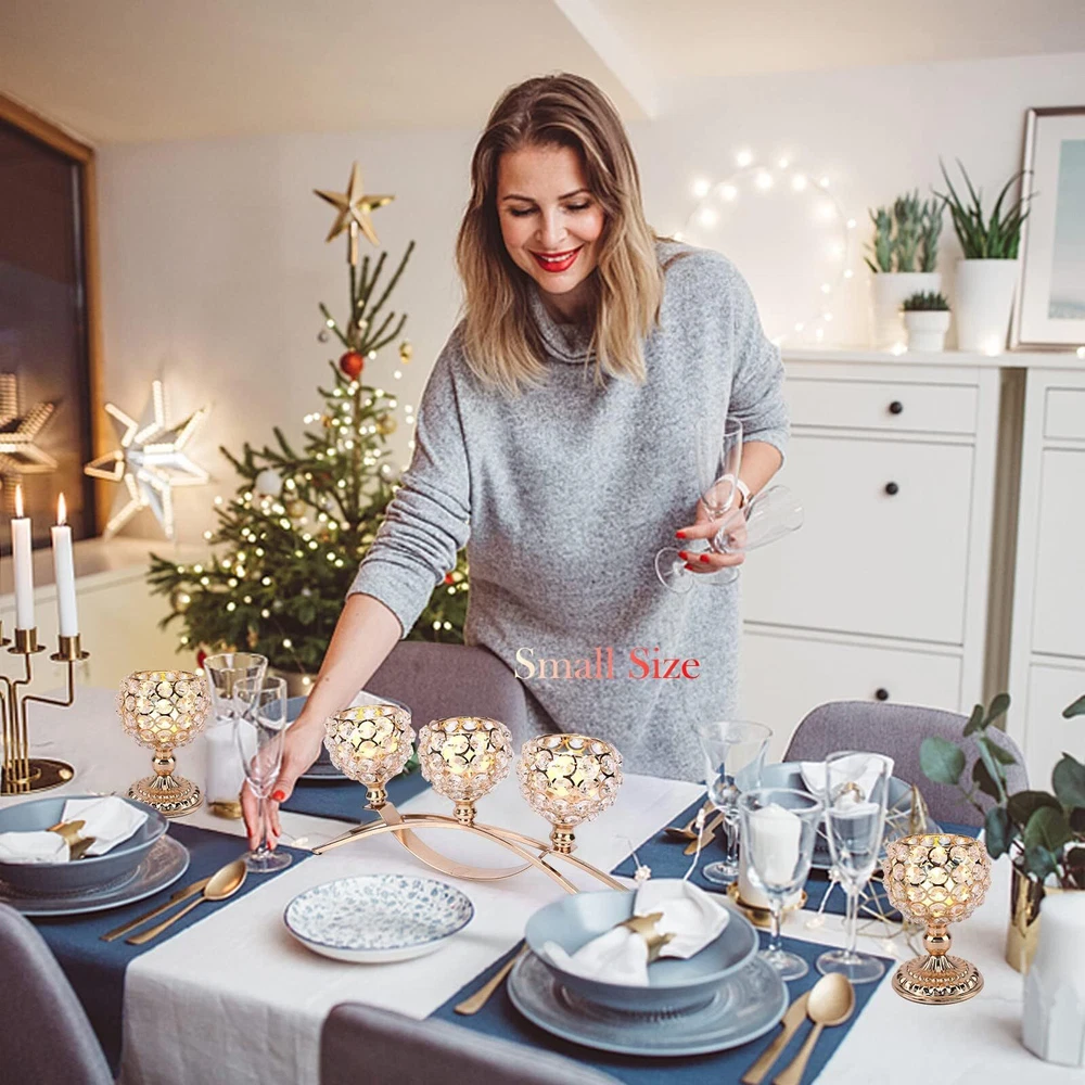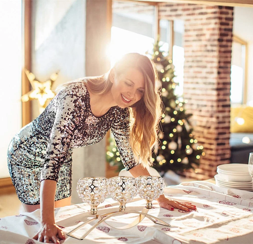 Crystal Candle Holders 3 Wick Gold Centerpiece Table Decorations for Dining Room Living Room Bling Votive Tealight Candle Holder Coffee Dining Table Centerpiece Decor Christmas Decorations Candle Holders for Table Centerpiece:Elegant and Exquisite. Only fitting for candles (tea light candle, led candles,votive candle, etc) with a diameter less than 3.8cm/1.5”.Looks very high-end sitting on table.Glittering crystal bowl creates a romantic Ambience.Crossover arch shape can ensure the holder solid and stable.Candle holder is very sturdy,well-made,shiny and elegant.Pretty addition to any area of home.Perfect choice for your home decor.Great for any season. High Quality:The crystals are nice high quality ones with lots of sparkle.Very beautifully constructed and when candles are lit up in it the light show is great when you have the lights off. Crystal candle holder have superb clarity.Good light transmission.Glistens even without light shining on it.Tea light candle holder with great ornamental and practicality is an indispensable item in life. Exquisite Craft:Crystal beads candle holder.Well made and sturdy.Candle holder's crystals are welded to the overall structure to make the octagonal crystals more neat and stable.More gorgeous, steadier and sturdier than normal 3 arm candle holders. And, there are also black flannel anti-skid floor mats on the bottom of it so it sits gently on a table without worrying about marrying your furniture. Beautiful centerpiece for any table. Wide Application:Fits best on flameless electronic candle or tea light candle.Also can be matched with flowers for tabletop decor accessories.Perfect for for weddings, birthday,housewarming party,fireplace ect.centerpiece table decorations.Also great as gifts for Mothers Day Valentines Day House warming party Wedding Birthdays Christmas and Thanksgiving festive atmosphere decorations. Beautiful for in-house decor or for gifting purpose too. Gifts for Women,gifts for mom,gifts for wife,Housewarming Gift Tips:This candle Holder can be disassembled. If you find the holders are not in line with one another.Please dismount the crystal bowl,put it together again. Thread design that could easily be installed and disassembled.....Crystal beaded candle holder,centerpiece table decorations for living room dining room coffee table decoration,candle stick gold 3 wick candle holder candlestick holders candelabra,gold centerpieces for table,christmas centerpieces for tables,dinner table centerpiece decor gift ideas Housewarming gifts new house new home Shipping We offer FREE shipping on all orders! We ship within Three business days of payment, usually sooner. We use a selection of shipping services such as UPS, FedEx, USPS etc. We only ship to the lower 48 states, no APO/FPO addresses or PO Boxes allowed. Local pickups and combined shipping options are not provided at this time. International buyers – please note: Import duties, taxes, and charges aren't included in the item price or postage cost. These charges are the buyer's responsibility. Please check with your country's customs office to determine what these additional costs will be prior to bidding or buying. Order Cancellation Policy * Order Cancellation Policy ** You can return a product for up to 30 days from the date you purchased it. 1. The seller reserves the right to cancel the special case only due to eBay cancellation fee. 2. The decision of seller is the final. 3. The seller will respond to the cancellation request within 2 business days. Please wait for the result of cancellation. 4. In case the cancellation is not completed by some reasons, the buyer can follow the options below to get the refund. 4.1 The buyer can reject the item when it arrives. 4.2 The buyer can send the item back to the seller within 30 days If the buyer receives item (USA Shipment ONLY). The seller will provide the FREE return label to the buyer when the buyer opens " Return Item" case on eBay by using the reason as "Change my mind" ONLY. 5. When buyer has placed the order. The order will be processed and completed by automatic warehouse system within 5 minutes. In case that buyer sends the cancellation request after 5 minutes of placing the order, the request will be rejected. **Sending direct message to cancel the order is not allowed for every case.* Return Policy - If buyer would like to return the items for refund or replacement, please CONTACT SELLER to receive the free return label from seller. The refund or replacement will be processed with the tracking number of return label which is provided by seller only. The other ways of return which are not approved by seller will not be processed for the refund or replacement. Return You can return a product for up to 30 days from the date you purchased it. Any product you return must be in the same condition you received it and in the original packaging. Please keep the receipt. Payment We accept payment by any of the following methods: eBay Payments Please pay as soon as possible after winning an auction, as that will allow us to post your item to you sooner! Feedback Customer satisfaction is very important to us. If you have any problem with your order, please contact us and we will do our best to make you satisfied. Contact Us If you have any queries, please contact us via ebay. We usually respond within 24 hours on weekdays. Please visit our eBay store to check out other items for sale! Thank you for shopping at our store.