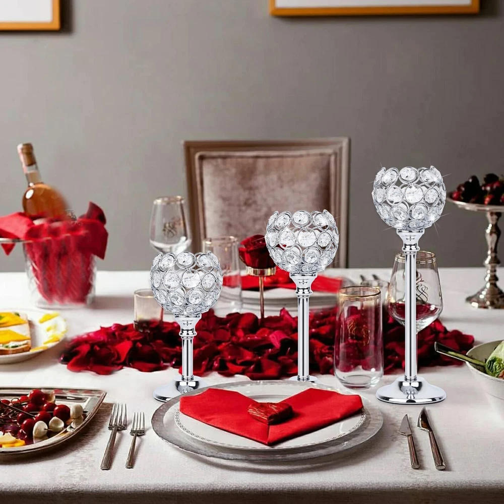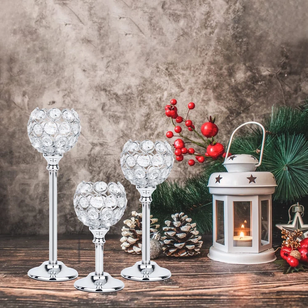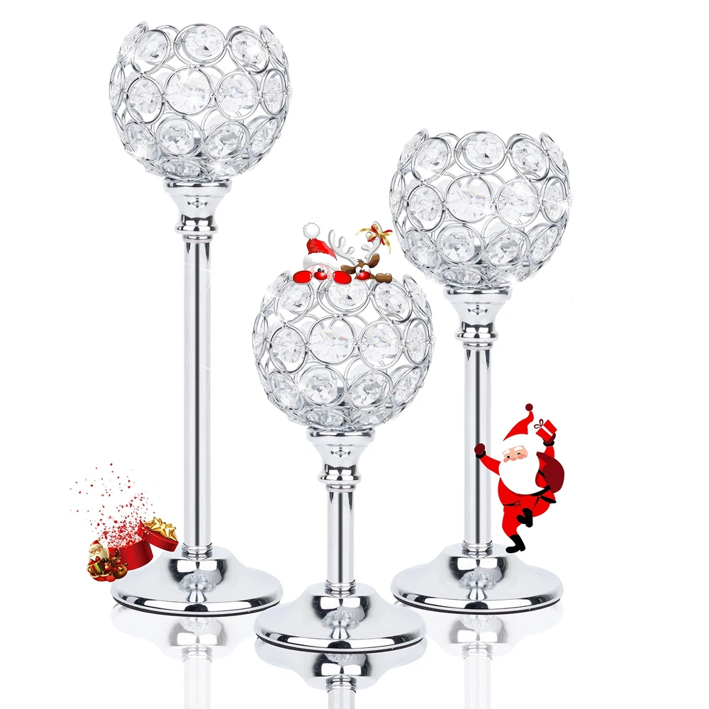 Crystal Candle Holders Set of 3 Candelabra, Silver Candle Holder Candlestick Holder for Wedding Decor, Dining Table, Silver Centerpiece Bridal Shower Coffee Table Decor [Candle Holders for Table Decor] Our Exquisite and Elegant candle holders set is composed of multi-cut crystal beads and high-quality metal, with an elegant shape. The silver candle holder will reflect a pattern that looks pretty on the table. [Crystal Table Candelabra tall candle holders] The Gorgeous crystal decorations for home including 10.6"x2.5",8.7"x2.4",6.7"x2.4"total 3pcs, the tea light candle is very suitable for decoration, such as wedding crystal candle holders set of 3 tall, party silver candle, Bedroom silver crystal candle holder, dining table centerpieces, Kitchen tall glam candle stands,crystal candle holders set of 3, Bar bling candles, silver crystal candle holders, Hotel candle holder silver set of 3, Restaurant silver candlestick holders, etc. [Centerpieces for tables Set of 3 ] The candle holders for table centerpiece has 3 different height candle holders, the Candle plate Dia is 1.5'', this is a very nice practical decoration, It is a right size for your dining room , this long candle holders can give your room a nice atmosphere (Candle not included). [Candle Holder Centerpiece for Valentine's Day] First-class crystal beads silver candelabra, Elaborate cut, when sunlight hits the crystal ball, there will reflect rainbow light, very beautiful! silver centerpieces for tables base is made of silver painted metal, Safe and reliable. [Unique living room centerpieces for table] The candle stick holder for table has a cryatal wire cup design, This fancy candle holder will definitely add luster to your space,decoration for table dining room. Shipping We offer FREE shipping on all orders! We ship within Three business days of payment, usually sooner. We use a selection of shipping services such as UPS, FedEx, USPS etc. We only ship to the lower 48 states, no APO/FPO addresses or PO Boxes allowed. Local pickups and combined shipping options are not provided at this time. International buyers – please note: Import duties, taxes, and charges aren't included in the item price or postage cost. These charges are the buyer's responsibility. Please check with your country's customs office to determine what these additional costs will be prior to bidding or buying. Order Cancellation Policy * Order Cancellation Policy ** You can return a product for up to 30 days from the date you purchased it. 1. The seller reserves the right to cancel the special case only due to eBay cancellation fee. 2. The decision of seller is the final. 3. The seller will respond to the cancellation request within 2 business days. Please wait for the result of cancellation. 4. In case the cancellation is not completed by some reasons, the buyer can follow the options below to get the refund. 4.1 The buyer can reject the item when it arrives. 4.2 The buyer can send the item back to the seller within 30 days If the buyer receives item (USA Shipment ONLY). The seller will provide the FREE return label to the buyer when the buyer opens " Return Item" case on eBay by using the reason as "Change my mind" ONLY. 5. When buyer has placed the order. The order will be processed and completed by automatic warehouse system within 5 minutes. In case that buyer sends the cancellation request after 5 minutes of placing the order, the request will be rejected. **Sending direct message to cancel the order is not allowed for every case.* Return Policy - If buyer would like to return the items for refund or replacement, please CONTACT SELLER to receive the free return label from seller. The refund or replacement will be processed with the tracking number of return label which is provided by seller only. The other ways of return which are not approved by seller will not be processed for the refund or replacement. Return You can return a product for up to 30 days from the date you purchased it. Any product you return must be in the same condition you received it and in the original packaging. Please keep the receipt. Payment We accept payment by any of the following methods: eBay Payments Please pay as soon as possible after winning an auction, as that will allow us to post your item to you sooner! Feedback Customer satisfaction is very important to us. If you have any problem with your order, please contact us and we will do our best to make you satisfied. Contact Us If you have any queries, please contact us via ebay. We usually respond within 24 hours on weekdays. Please visit our eBay store to check out other items for sale! Thank you for shopping at our store.