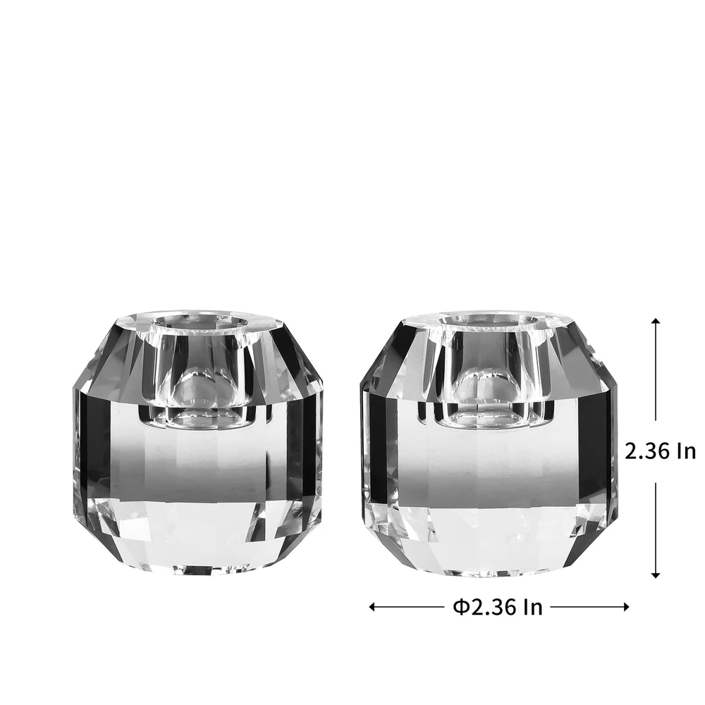 Crystal Candle Holders Set of 2, 2.36" x 2.36" x 2.36" Crystal Candlestick Holders. CRYSTAL CANDLE HOLDERS: Made from superior quality k9 crystals in a sleek and modern design, superb craftsmanship and premium construction ensure that these crystal candle holders are pure, sparkling and elegant. EXQUISITE CRAFTSMANSHIP: handcrafted fine crystal with superior weight and stability, highlighting the natural beauty of candlelight. SET OF 2 CANDLESTICKS: 2.36" x 2.36" x 2.36" (60 x 60 x 60cm), This crystal taper candle holders comes with a convenient 2 candle holder set that perfectly with any tabletop decor. GIVE YOU A SPECIAL HOLIDAY: This taper candle holder is suitable for taper candles. They can be placed in the living room, bar, dining table, etc. to create a romantic atmosphere for weddings, Mother's Day, Birthday party. EXQUISITE PACKAGING: Delivered in delicate package, making it a great gift for anniversaries, Valentine's Day, Mother's Day, and weddings!