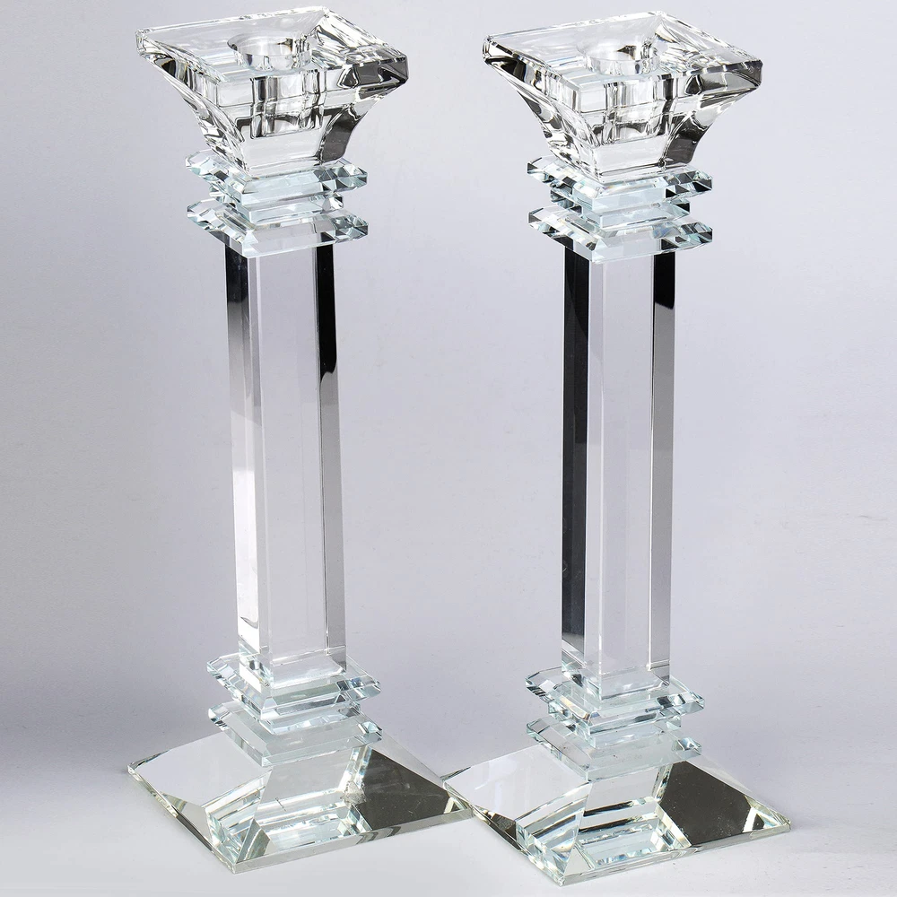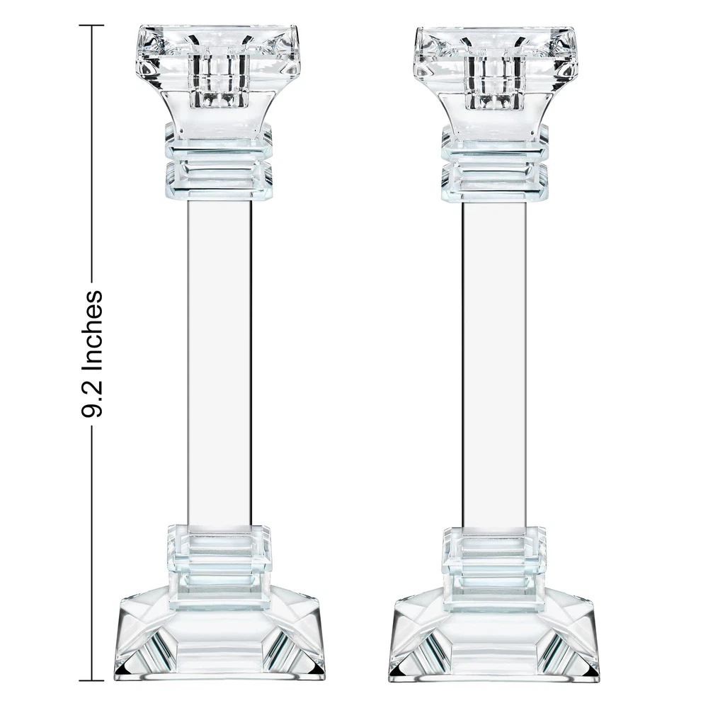 CRYSTAL CANDLESTICKS HOLDER - These 9.2" tall candlestick holders are perfect for short, taper or long candles. Fits candles up to 7/8 inches in diameter. ELEGANTLY CARVED - Made with genuine fine crystal, these candle holders feature a fine sleek design, with beautiful craftsmanship and quality construction. Accentuate the natural beauty of candlelight. ACCENTUATE YOUR DECOR - Add a touch of elegance to your home decor or centerpiece dining table decor with this beautiful pair of crystal candle stick holders. SIMPLY STUNNING - This candle stand comes in convenient set of 2 candle holders, the perfect addition to enhance any setting. Artistically designed to coordinate beautifully with any tabletop décor. MAKES A GREAT GIFT - An excellent present choice also for birthdays, holidays, anniversaries, romantic evenings, Valentine’s Day or wedding registry!