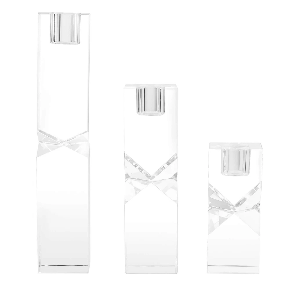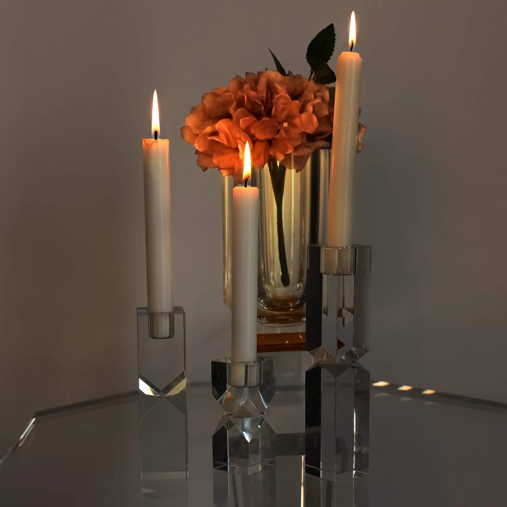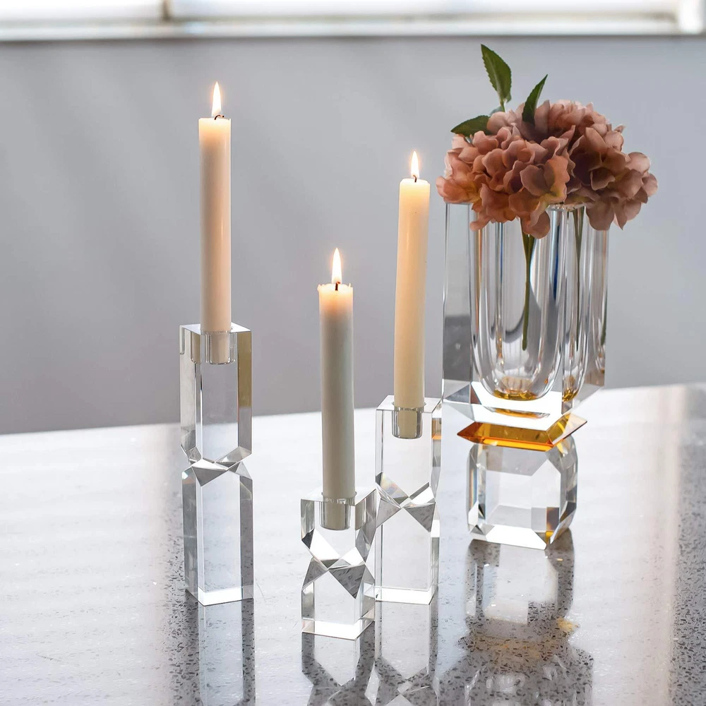 Crystal Candlestick Holder Set of 3 for taper candle, Cylinder with slim waist Design. handmade cut, High-quality K9 Crystal, Totally solid. Diameter-1.57'', Height-3.9''/5.9''/7.9''. Heavy-duty, durable design. No bubbles, sharp corners and wrinkles on the surface, beautiful. This exquisite crystal candle holder comes with a gifted box, the perfect gift for Friends and Family. A great centerpiece for home-table. The perfect choice to create a beautiful/relaxing atmosphere with a warm and soft light. It will be a great centerpiece decorative candle holder set for the home table, Valentine's Day weddings, parties, new year, or other special holidays or events. After-sales service: We committed to providing the most reliable with the best after-sales service for all our customers. If you have any questions please feel free to us, we will do our best to solve the problem.