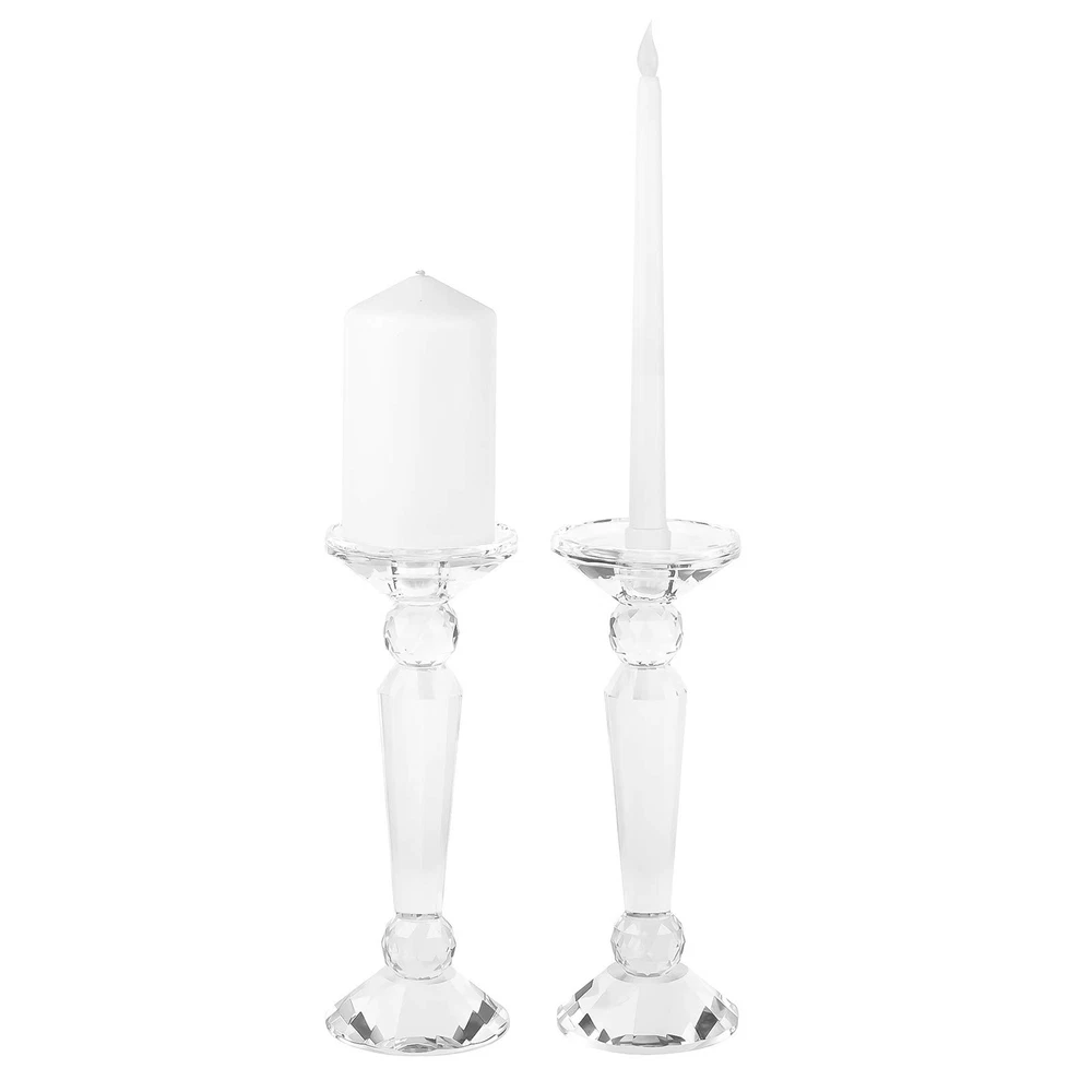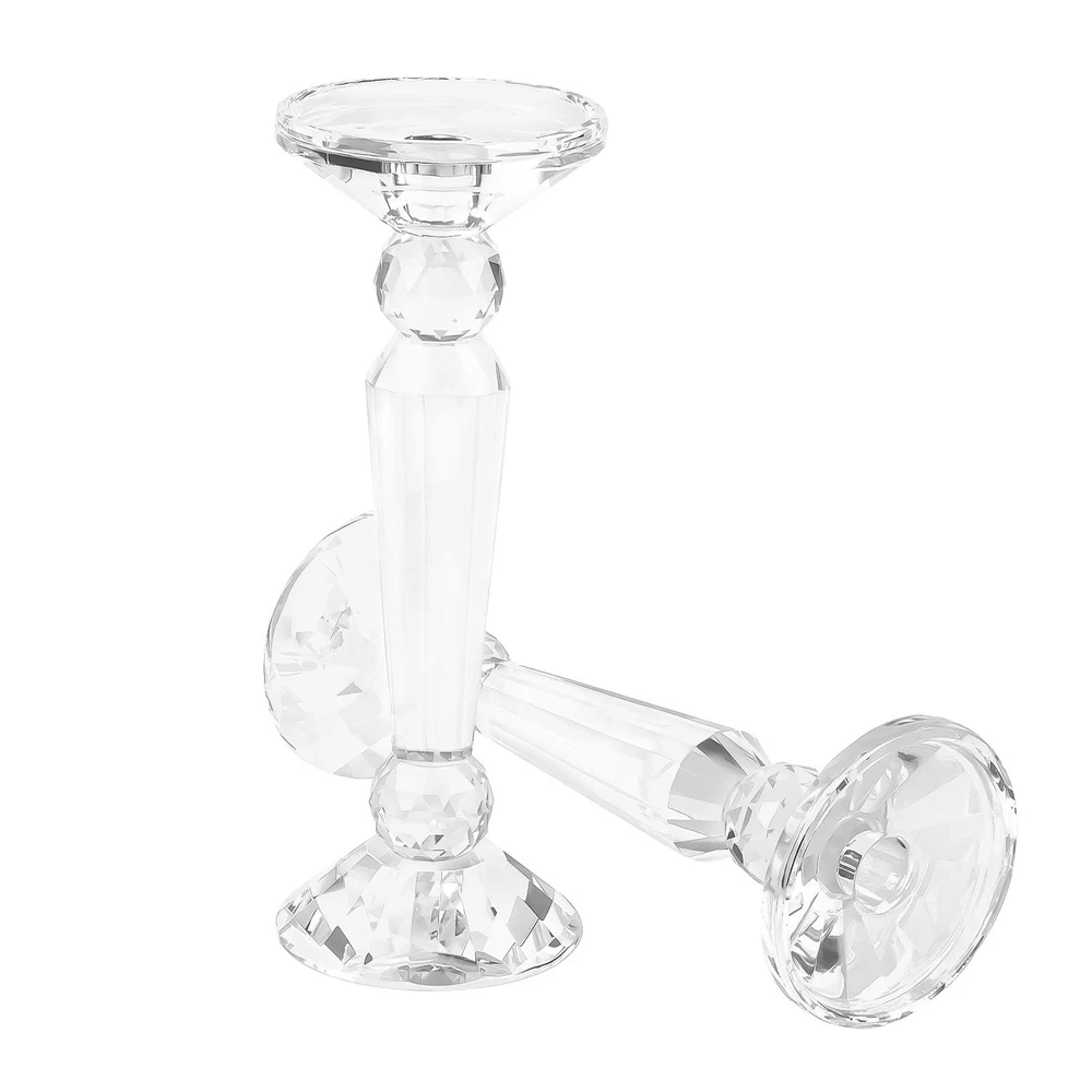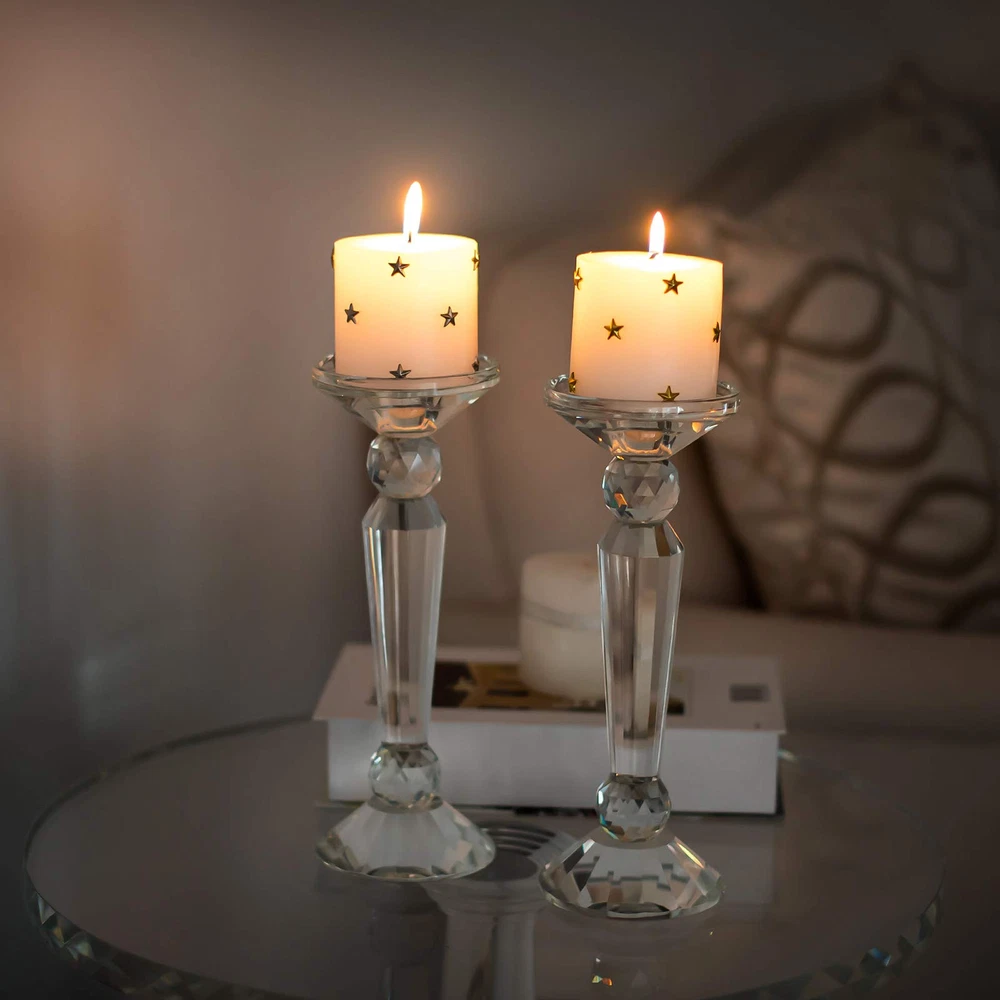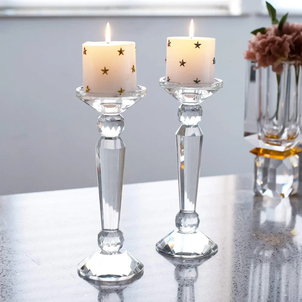 Crystal Candlestick Holder Pack of 2 for pillar candle or taper candle, double-functional. handmade cut, High-quality K9 Crystal, Totally solid. Diameter-3.9'', Height-10.6''. Heavy-duty, durable design. No bubbles, sharp corners and wrinkles on the surface, beautiful. This exquisite crystal candle holder comes with a gifted box, the perfect gift for Friends and Family. A great centerpiece for home-table. The perfect choice to create a beautiful/relaxing atmosphere with a warm and soft light. It will be a great centerpiece decorative candle holder set for the home table, Valentine's Day weddings, parties, new year, or other special holidays or events. After-sales service: We committed to providing the most reliable with the best after-sales service for all our customers. If you have any questions please feel free to us, we will do our best to solve the problem.
