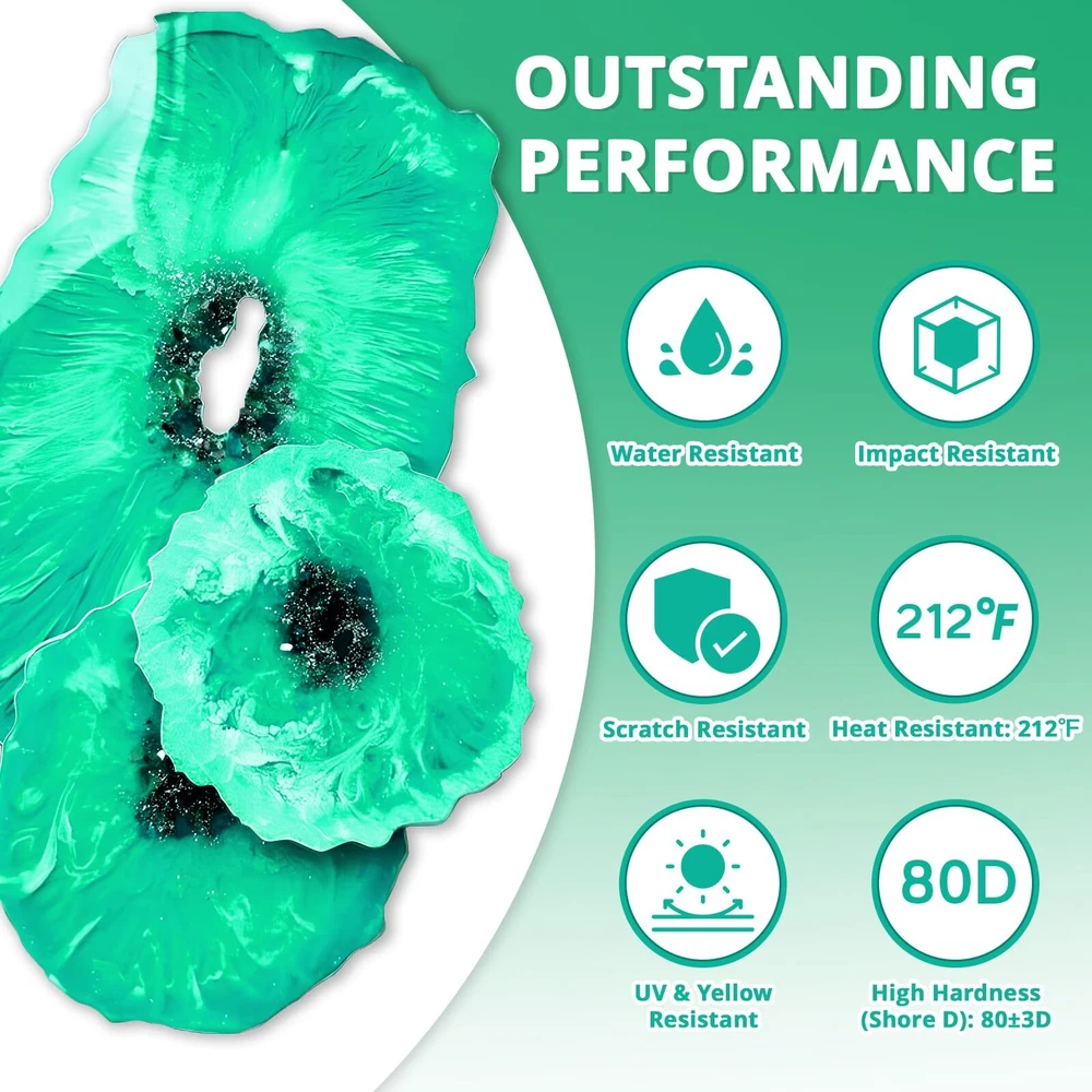 ใ๐๐ฎ๐๐๐ฅ๐-๐ ๐ซ๐๐ & ๐๐๐ฅ๐-๐๐๐ฏ๐๐ฅ๐ข๐ง๐ ๐๐ซ๐ข๐ฅ๐ฅ๐ข๐๐ง๐๐ใ: With our own R&D and manufacturing team - the innovative self-leveling technology automatically releases residual air bubbles and unevenness to ensure a perfectly smooth surface, and you will have a crystal clear, glassy smooth, bubble-free surface. Widely used in DIY crafts, jewelry, candlesticks, lamps, table tops, coatings, trays, bar tops, castings, woodwork, ornaments, coasters, and other resin artworks ใ๐๐ซ๐ฒ๐ฌ๐ญ๐๐ฅ ๐๐ฅ๐๐๐ซ ๐๐ข๐ ๐ก ๐๐ฅ๐จ๐ฌ๐ฌ ๐ ๐ข๐ง๐ข๐ฌ๐กใ: We have added UV stabilizers + HALS (Hindered Amine Light Stabilizers), which can effectively resist UV and yellowing to ensure that the artwork has an ultra-clear, beautiful, high gloss appearance, while it is scratch and impact resistant, water and moisture resistant, and easy to clean, so that your artwork will be color stable and vibrant for a long period, and will shine like never before ใ๐๐๐ฌ๐ฒ ๐๐จ ๐๐ฉ๐๐ซ๐๐ญ๐ใ: Ensure the resin and hardener are mixed thoroughly at a 1:1 volume ratio. Work at room temperature 75-85ยฐF for up to 30-40 minutes with a 24-hour cure time to create your best artwork!!! ๐๐๐๐ ๐๐๐๐๐ resin epoxy with a heat resistance of up to 212ยฐF and a hardness of up to 83D prevents scratches and protects your artwork, making it as hard as diamond ใ๐๐๐๐ ๐๐จ ๐๐ฌ๐ใ: FOOD SAFE Epoxy Resin - Made from premium raw materials and a safe, non-toxic formula that is No VOCs, solvent-free, BPA-free, non-flammable, non-irritating, and odorless, ensuring that the resin crafts meet the highest safety and performance standards, are safe for food contact and safe for indoor and outdoor use. Beginners can conduct a small amount of testing before work, which is very user-friendly for both beginners and professionals ใ๐๐ฎ๐ฉ๐๐ซ ๐๐๐ฅ๐ฎ๐ ๐๐ฉ๐จ๐ฑ๐ฒ ๐๐๐ฌ๐ข๐ง ๐๐ข๐ญใ: Our ๐๐๐๐ ๐๐๐๐๐ Epoxy Resin Kits Included: 1x 16 oz crystal clear epoxy resin, 1x 16 oz crystal clear hardener, 2x disposable gloves, 2x 30 ml measuring cups, 4x stirring sticks, 2x beak covers, 1x user guide. The perfect mix of everything needed to help you easily make epoxy resin Artcraft, experience the fun of resin handmade DIY making, and hurry up to create your unique artwork ใ๐๐ข๐ฉ ๐ ๐จ๐ซ ๐๐ฅ๐๐๐ง๐ข๐ง๐ ๐๐๐๐ฌ๐ฎ๐ซ๐ข๐ง๐ ๐๐ฎ๐ฉใ: The cup must be cleaned immediately after use, otherwise the cup will not be cleaned thoroughly. Use a solvent like isopropyl alcohol (rubbing alcohol) or acetone to clean it, for stubborn spots, pour a small amount of alcohol into the cup and let it sit for a few minutes before scrubbing, use a stiff-bristled brush / sponge / cloth to wash the inside of the cup. After scrubbing, rinse the cup thoroughly with warm water / warm soapy water to remove any remaining solvent and resin residues