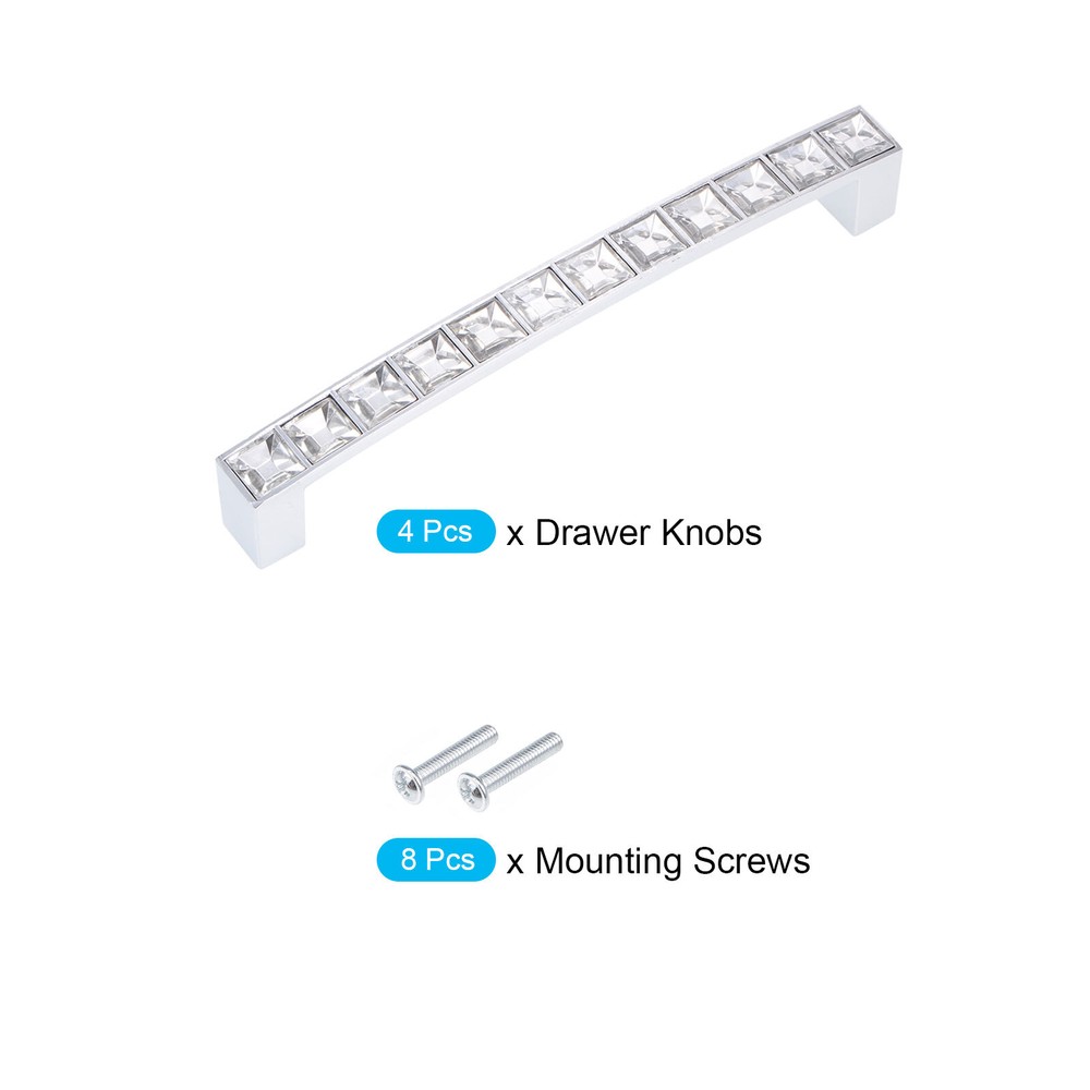 Crystal Drawer Pull Handles 136mm 5.35 Inch 6Pcs with Screws Clear Cabinet Knobs