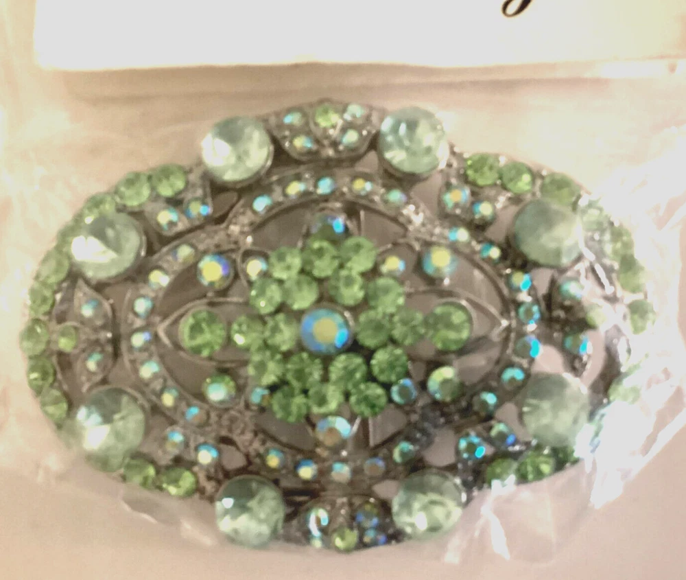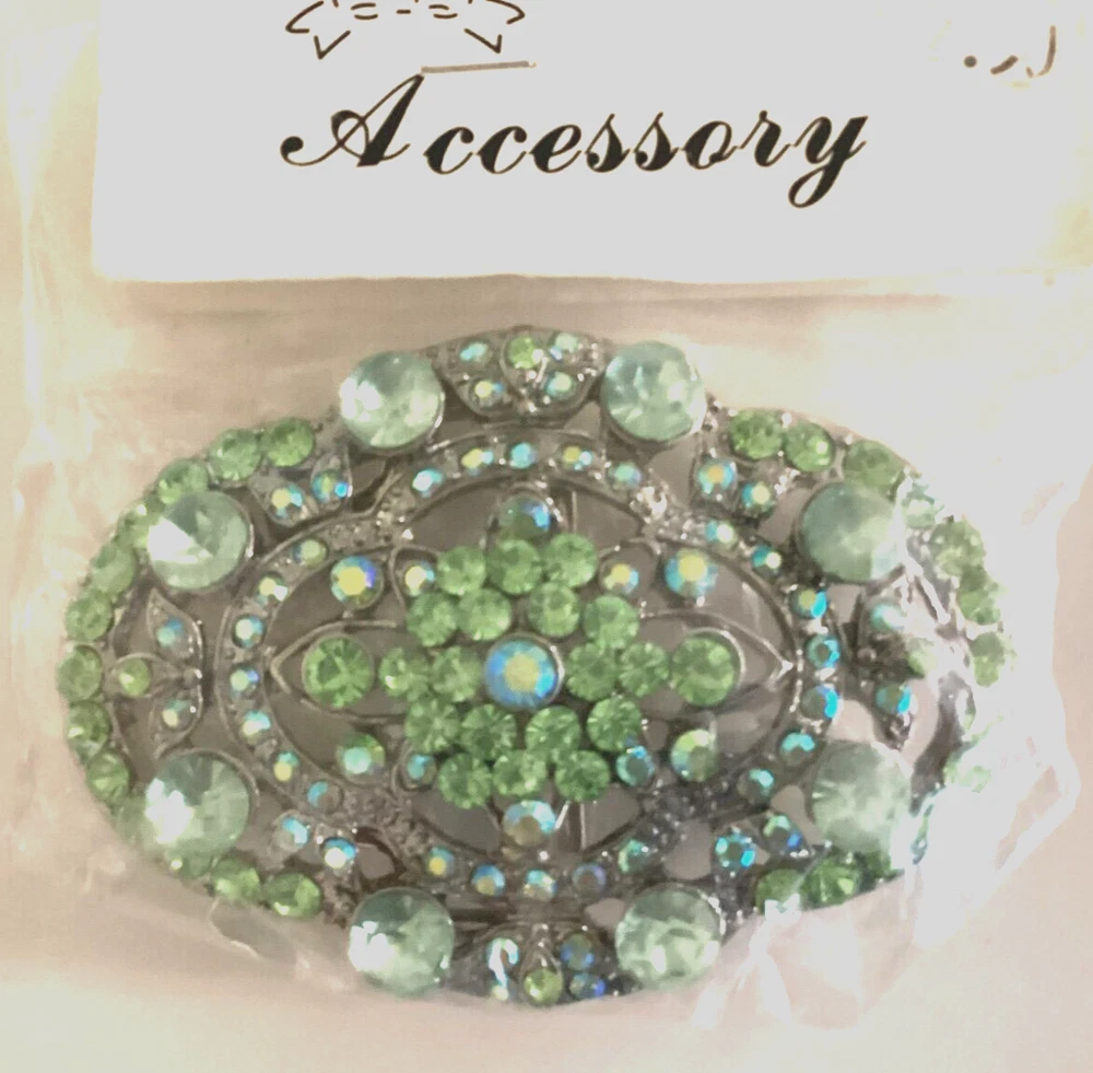 Crystal Green Rhinestones 3” Silver Oval Belt Buckle New In Package