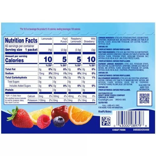 eBay Listing Template Crystal Light On the Go Drink Mix with Caffeine Item Description Kraft Crystal Light On the Go, 60 Ct. - Variety Pack Item Specifications Each variety pack includes 15 lemonade, 15 fruit punch, 15 raspberry lemonade and 15 wild strawberry with caffeine drink mixes Powdered fruit drink mixes are small and easy to pour for on-the-go convenience The individual Crystal Light Packets are ideal for adding fruity flavor to a standard 16.9 fl. oz. water bottle Enjoy a variety of fruit flavors for a bright, energizing taste Made with zero sugar and 10 calories per serving for guilt-free refreshment