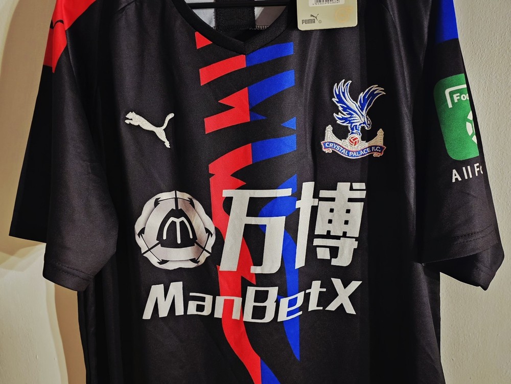 The product is a Crystal Palace 2019/20 Away Soccer Jersey in size XL, which fits like a LARGE. It is a PUMA jersey in black, featuring the Crystal Palace team logo. The jersey is intended for men who are fans of the team. This jersey is suitable for watching or participating in soccer matches, especially in the Champions League. *Jersey only* New/With Tags 🔴Some jerseys are bought in storage units which will not be authenticated. Prices reflect not being authenticated. Read descriptions & specifications on listings, messages are open.🔴