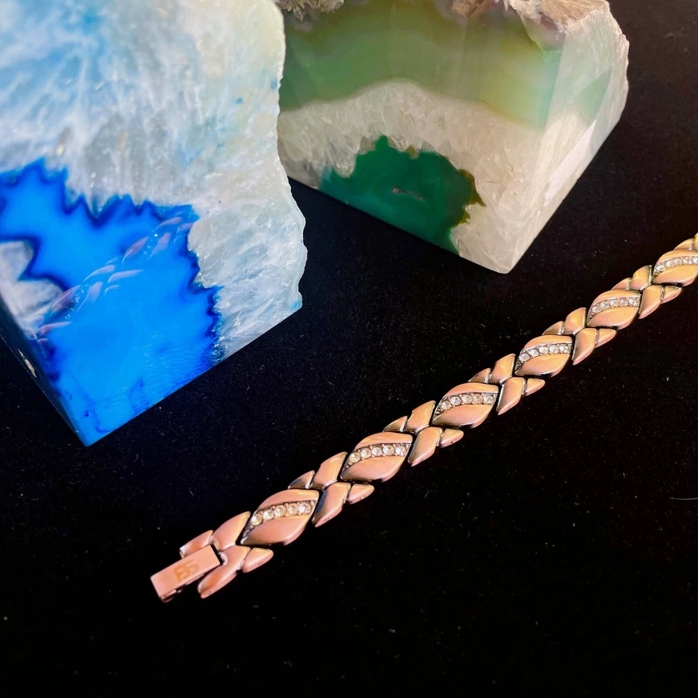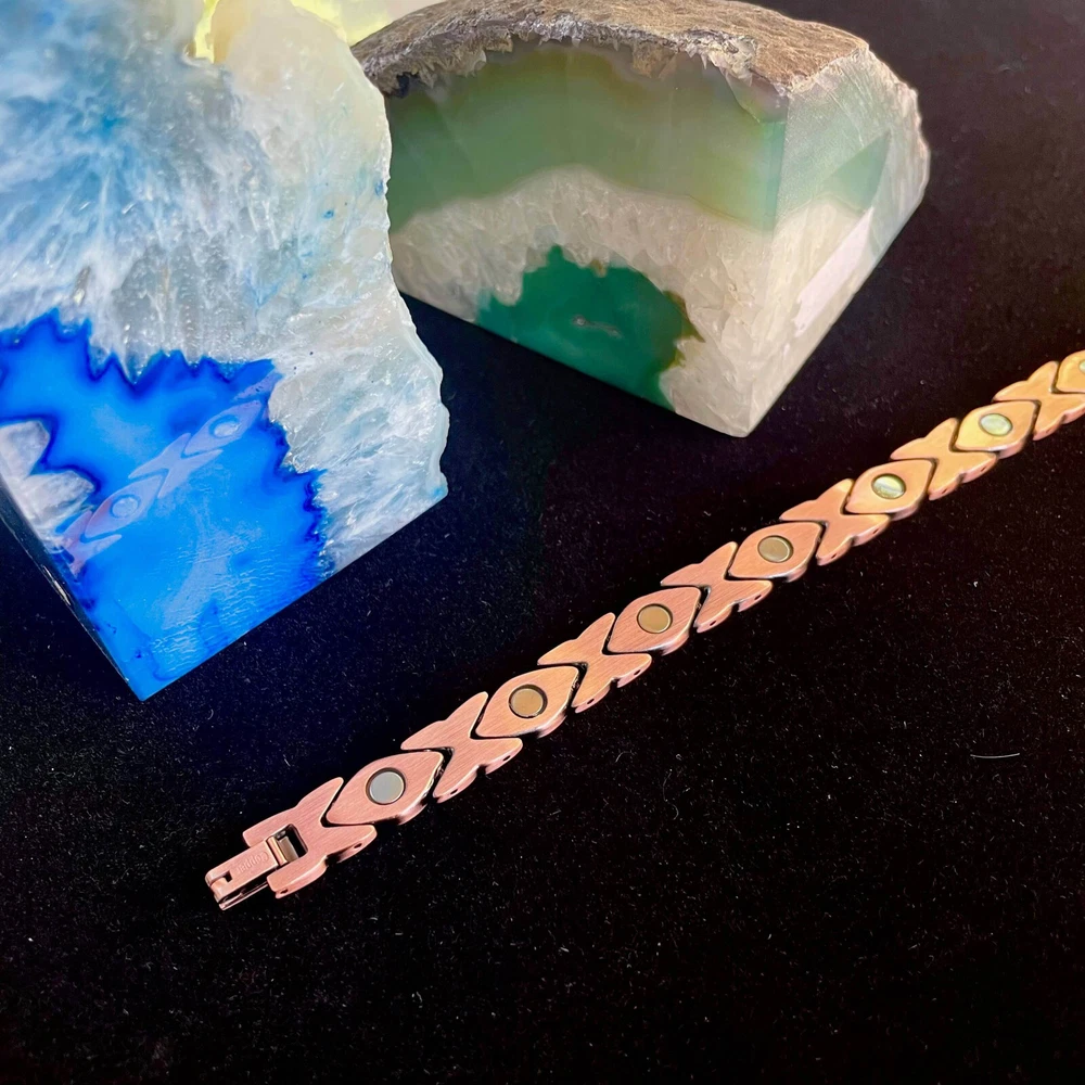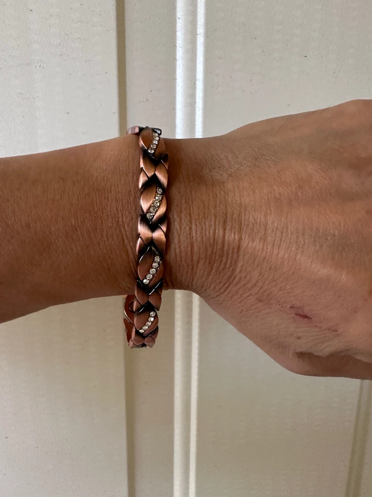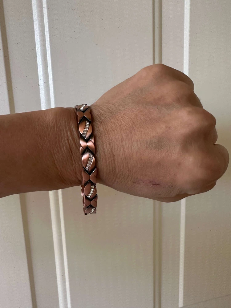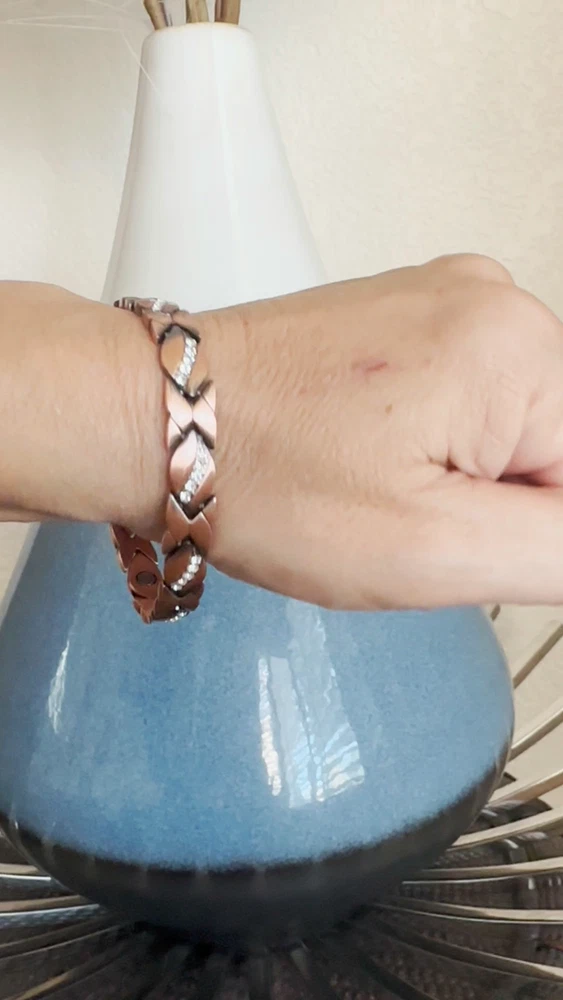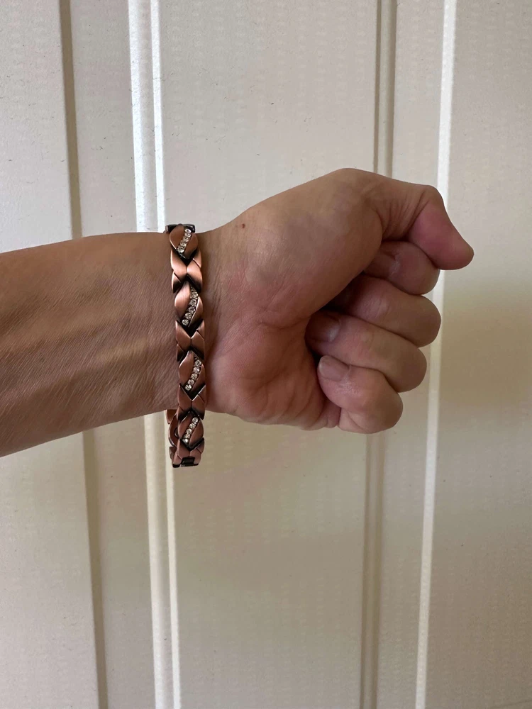 KEY TO GOOD HEALTH IS GOOD CIRCULATION...It works like Acupuncture without the needles! Perfect Healthy Holiday Gift for yourself and your loved ones... * BEST LOOKING, highest quality, Stylish Modern European Design and Precision Hand-Crafted Bracelets. Just wear it, it looks great and its therapeutic, what more could you ask for? Treat yourself and your loved ones. * Relieves Aches and Pain, Helps Arthritis pain, Improves Circulation, Reduces Inflammation, Boosts Immunity, Improves Balance, Stress & Anxiety relief (Makes you feel better) * 9 magnets and bio elements with 5,000 Gauss power! Pure 100% Copper bangle bracelet with strongest Neodymium magnets. (45,000 Gauss Total) * KEY BENEFITS- Our bracelets may help increase balance, strength, flexibility, and energy as well as increase blood circulation to help relieve aches and pain. It may help healing process and induces sense of well-being. It's perfect for people with active life style like runners, playing golf or sports. Great gift for yourself and your loved ones. Perfect Gift for everyone! Try it, love it or 60 days money back guaranteed.