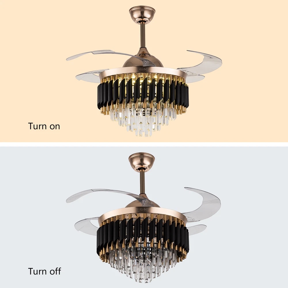 Crystal LED Ceiling Fan Light Chandelier Retractable Blades w/Remote Control 42" 42'' Retractable Ceiling Fan Light Crystal Chandelier LED Quiet W/Remote Control ❤ Modern invisible fan chandelier: Fan and chandelier combined into one with remote control, automatic telescopic fan blade, LED lamp beads ❤ Ceiling fan with remote: LED lights have 3 color changes (White-Warm-Yellow), Fan has 3 speed settings (Low-Mid-High). All these functions can be easily controlled by remote ❤ Modern Fan Light Chandelier: 42 inches when the fan is extended, Includes two lower bars, one for4.8 inches and the other for 9.8 inches, you can choose one to install ❤ Bedroom Ceiling Fans Material: metal body +crystal lamp cover + retractable blades + pure copper motor(providing powerful air flow, quiet and durable. With vents, it can reduce the internal temperature of the main unit and extend the life of the motor.) Ceiling Fan with LED Light: Replaceable LED light will last a longtime and save you the most on your energy bills. Ceiling Fan with Remote Control: Control the light and fan speed separately for ease and convenience. Color temperature: CCT 3 color changes(3 light cycles) Light source type: LED(Light Kit Included) Control: Remote Control Included Dimensions: 42Inch, 4 Retractable Blades Light Wattage: 36W Motor Wattage: 56W Speed: 3 Voltage: AC 110 -120 Volts Installation Instructions: Ceiling Chandelier Suitable for Flat Roof Concrete Ceiling House, for Gypsum Board and Wood Ceiling, You Need to Buy a Remodeling Bracket; Identify and Connect Electrical Wires; Ceiling height is greater than 110", Lift 110 Pounds. What you get: Retractable ceiling fan x 1 Screws sets x 1 Down rods x 2 (12CM & 25CM) Remote control x 1 Instruction Manual x 1 Payment Delivery details Terms of sales About us Contact us Payment We accept ebay payment 。 Fees such as import duties, taxes are not included in the item price or shipping costs. These charges are the buyer's responsibility. Delivery details Shipping: 2-9 working days to: USA Terms of sales We maintain high standards of excellence and strive for hundred percent customer satisfaction. Feedback is very important to us. We hope that you contact us immediately before you give neutral or negative feedback, so that we can address your concerns. It is impossible to address issues if we do not know about them! About us Your satis faction is our ultimate goal. We work hard to earn your trust and future business. Our certified technicians have tested each item before shipping. The unit comes with 1 year limited warranty on all manufacturing defects. a) If you receive a defective item, you may return it or ask for a discount. Please contact us within 14 days after you receive the package. b) What you returned must be intact and in its original packaging as re? u. Customer is responsible for shipping costs of the returned item. c) We will cover the cost of shipping back t with the shipping rate indicated in the registration page. We will send you a new unit or refund the full payment you paid. Thank you. Contact us Business Hour Business Hour: Monday To Friday: 8:30 AM to 5:00 PM (Beijing China time) Due to time zones, our reply to your questions may not be immediately. But within above working time, we will reply your email within 24 hours. If it's non-workdays, please kindly be patient and wait till Monday. Please contact us with ebay message. Please feel free to contact us if you have any questions. Monday To Friday: 8:30 AM to 5:00 PM (Beijing China time) Due to time zones, our reply to your questions may not be immediately. But within above working time, we will reply your email within 24 hours. If it's non-workdays, please kindly be patient and wait till Monday. Please contact us with ebay message. Please feel free to contact us if you have any questions. Country/Region of Manufacture Unknown Personalized No Era 21st Century (2000-now) Design Novelty Blade Color as pics show Fan Width / Number of Blades 4 Number of Speeds 3 * Feature * Creative Design,Durable Material,Beautiful Appearance Installation Area Indoor Type Ceiling Fan Room Bedroom, Dining Room, Home Office/Study, Kitchen, Laundry/Utility Room, Living Room, Playroom MPN Does Not Apply Brand Unbranded Style Modern Lighting Technology LED Material pure copper, Crystal, Metal Color Black Voltage AC 110 -120 Volts Item Diameter 42 in Features Remote Control Light Wattage 36W Motor Wattage 56W Blades 4 blades Control Style Remote control Sensor Type does not apply Number of Settings 1 Finish does not apply Light Color does not apply Cord Color does not apply Shade Shape does not apply Power Source does not apply Manufacturer does not apply Department Adults LED String/Strip Type does not apply 🔥Warranty 🔥 3 Years Feature 2 ★Good Quality Guarantee★ ★Feature※ ★★★Long Service Life★★★ Feature 3 ❤Durable Material❤, ❤Creative Design❤