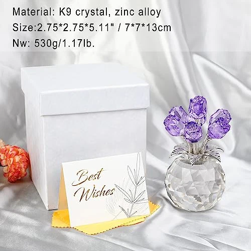Menu 1. We require immediate payment. 2. We currently accept payment via eBay managed payments only. 3. Once payment is cleared, we will dispatch your shipment within 1-3 business days. Please refer to the "Shipping" tab for more information regarding shipping speed to your destination. Crystal Rose Figurines Gifts for Women Valentine's Day, Glass Floral Ornament for Mother's Day Birthday Christmas Amethyst Collectible Rose Flowers Anniversary Floral Presents for Her (Purple) Product description EXCELLENT GIFT FOR HER: The wonderful crystal roses figurine will be an ideal gift for mum, wife, daughter, girlfriend, sisters, best friends, aunt, colleagues, and so on. Especially on some special occasions like Mother's Day, Anniversary, Birthday Party, Thanksgiving, Christmas, Wedding and Engagement etc. To surprise her bringing happiness and good luck ELEGANT DESIGN AND ROSE: The lifelike rose ornament is a universal symbol of noble and enduring love. The purple roses represent mystery, uniqueness, maturity, and deep love. It is regarded as a romantic flower by many people and is said to bring good luck and heighten your sense of joy and happiness. Keep it forever with our crystal rose decor and preserve the love eternally PREMIUM CRYSTAL AND CRAFTS: Our Rose Flower Keepsake is made of K9 crystals, without impurities. The crystal at the bottom is polished into multiple facets, which can better refract the rainbow lights. The glass flowers match with silver metal stems and leaves, increg the sense of splendor, detail, and elegance. Size: 7*7*13cm/2.75*2.75*5.11"; Nw: 530g/1.17lb. DAZZLING ORNAMENTS: The rose bouquet artwork will be stunning decor in the sun, bringing a touch of gorgeousness to your home, like a table display, festival celebration, wedding party, and so on. It can stand freely on your nightstand, bookshelf, cabinet, fireplace, display stand, etc. Adorning your home and creating an elegant, vivifying, harmonious, and romantic atmosp. It can add color and sparkle to any place, and make her happy whenever she sees it READY TO BE GIFTS: All of our crystal rose gifts all well packed in an exquisite gift box, t are a wish card and a wipping cloth, being ready to surprise and love her at any time PLEASE MESSAGE US IF YOU HAVE ANY OTHER QUESTIONS, AND MANY THANKS FOR READING ALL OF THIS. Copyright ©#. All Rights Reserved.