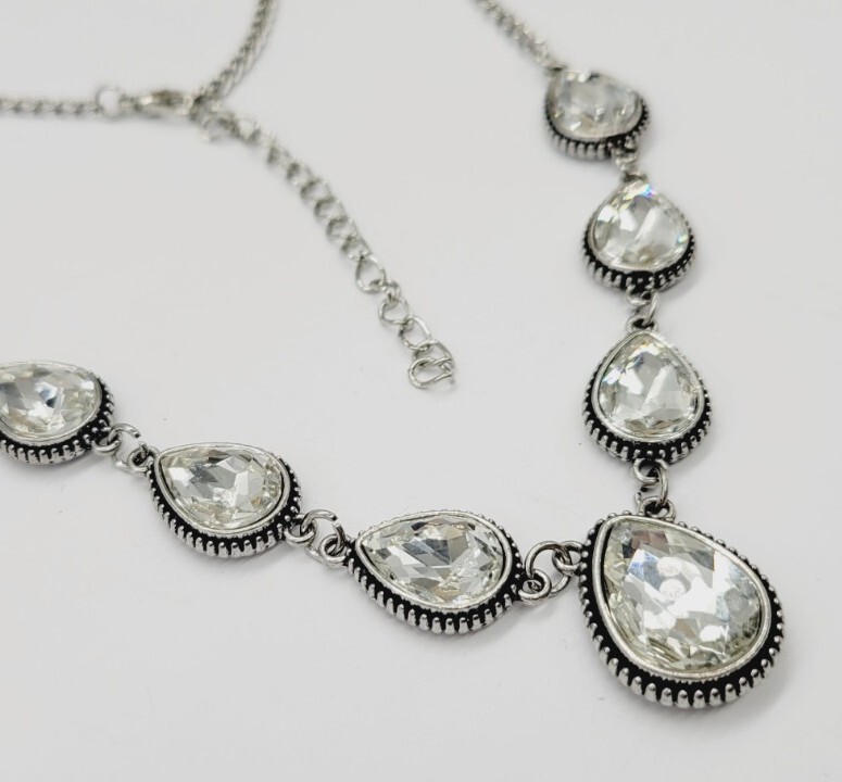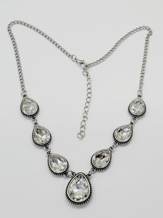 $ 6.34Elegant Silver-Plated Necklace – Sparkling Artificial Stones | Luxury Wear