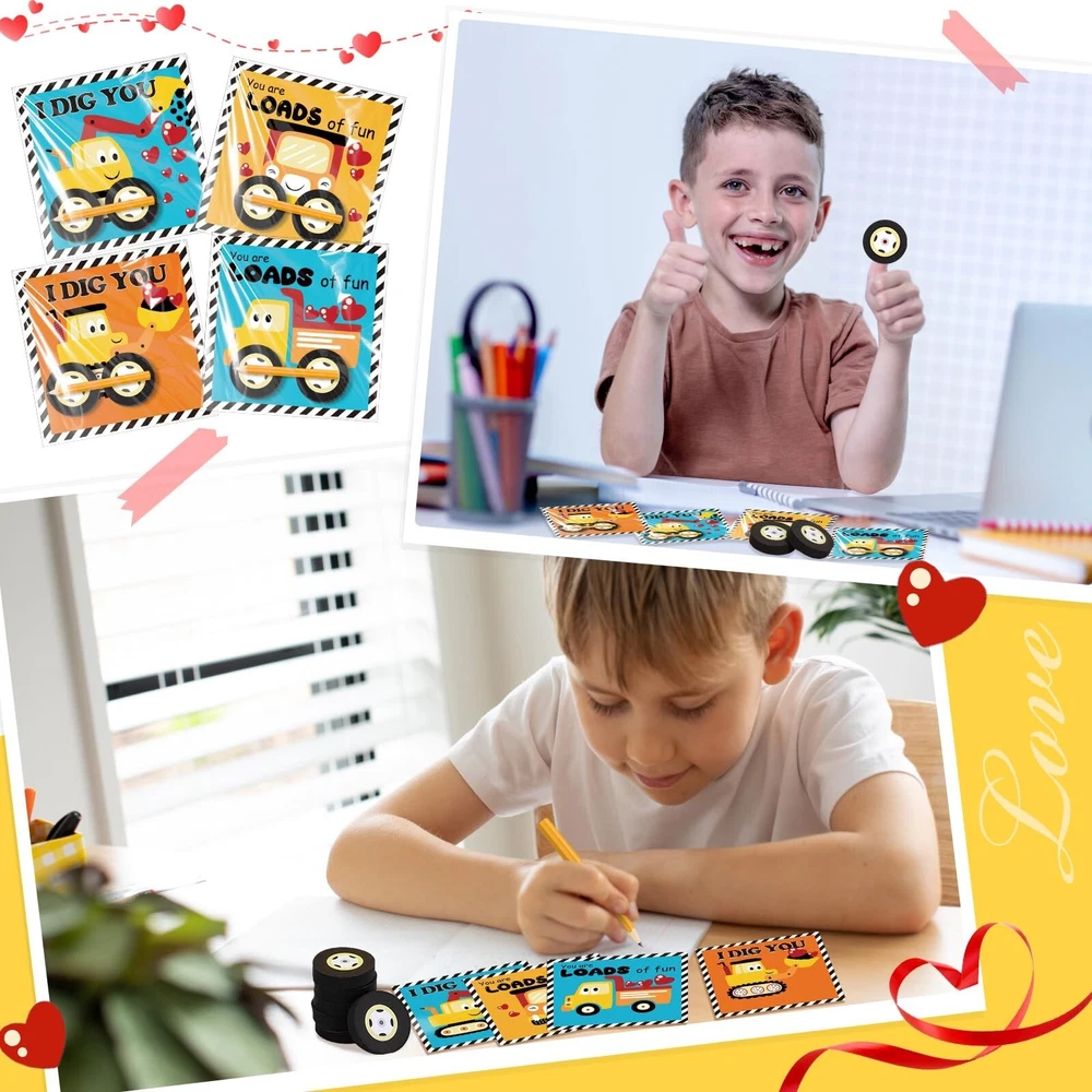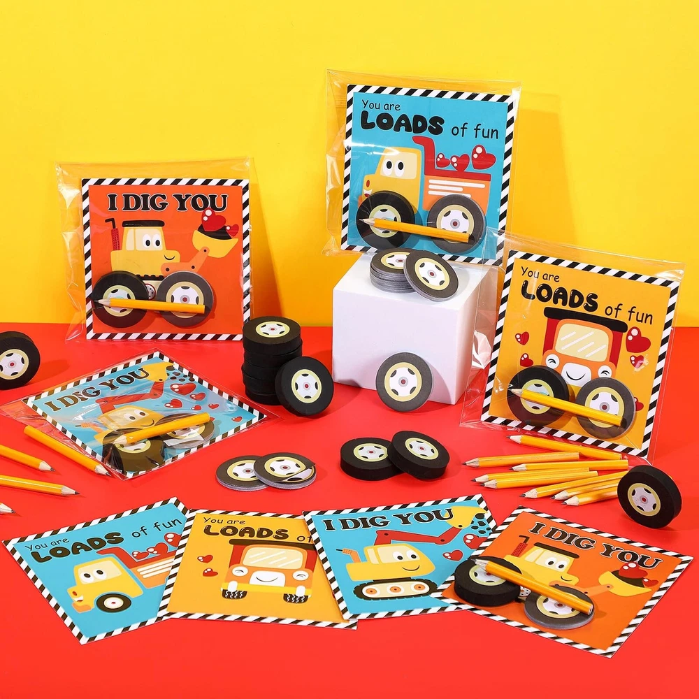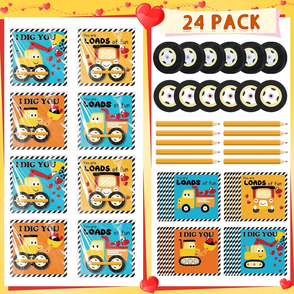 Ctosree 24 Packs Construction Party Favors Bulk Construction Valentines Cards Stationery Set Mini Car Wheel Erasers Stick Notes Pencils Exchange Gift Game Prizes Tractor Party Supplies Product Details Brand: Ctosree Unit Count: 24.0 Count Item dimensions L x W x H: 6.3 x 3.94 x 2.36 inches Item Weight: 0.44 Pounds Manufacturer: Ctosree Product Dimensions: 6.3 x 3.94 x 2.36 inches Item Weight: 7 ounces Country of Origin: China Item model number: RIM-Ctosree-3492 Manufacturer recommended age: 14 years and up Manufacturer: Ctosree Construction Party Favors Bulk: our generous inclusion has 24 construction Valentine's Day cards, 24 stick notes, 24 wheel erasers, 24 pencils, and 24 opp bags, they are plentiful enough for a fun, memorable Valentine's party or gift giving spree Elaborate Valentine's Day cards: the construction Valentine cards are designed around the theme of construction, and there are 4 different styles to make the cards more attractive, you can pack wheel sticky notes, wheel erasers, pencils, and cards in clear self adhesive bags and distribute them to lovers, friends, coworkers on Galentines or Valentines Day Quality Material: enjoy construction party favors made from quality materials, the construction greeting cards are made from 300g coated paper and stick notes use 80g double adhesive paper, ensuring durability and strength, both are ideal for love notes, reminders, or simply getting into the holiday charm Convenient Sizes: the Valentine exchange gifts, from construction greeting cards measuring about 5.1 x 5.1 inches to stick notes and wheel erasers about 1.8 inches in diameter, are ideal for various purposes, and the pencils, about 1.8 inches long, fit in most purses or pockets for easy carrying Multipurpose Use: these versatile Valentine's Day stationery sets can be applied for note taking, reminders, greetings, classroom prizes, and tokens of appreciation, this construction gift set is not only ideal as a Valentine's Day exchange gift, but also as construction party favors, ideal as gifts for family, friends, and lovers Features: Appeal to the eyes with the multicolored Valentine's Day gifts these Valentine's Day gifts party favors offer. The vibrant hues give life to the construction greeting cards, stick notes, and other contents of the package, making each piece enjoyable and aesthetically pleasing to use. Experience the charm of giving and receiving with these construction Valentine gifts. The construction themed set not only promotes creativity but also makes an impressive gift due to its unique design and functional practicality. Share the love this Valentine's with this innovative gift solution. Specifications: Material: Construction greeting cards: 300g coated paper Stick notes: 80g double adhesive paper Color: multicolored Size: Construction greeting cards: about 5.1 x 5.1 inches/ 13 x 13 cm Stick notes: about 1.8 inches/ 4.5 cm in diameter Wheel erasers: about 1.8 inches/ 4.5 cm in diameter Opp bags: about 5.91 x 7.09 inches/ 15 x 18 cm Package includes: 24 x Construction greeting cards 24 x Stick notes 24 x Wheel erasers 24 x Pencils 24 x Opp bags Notes: Manual measurement, please allow slight errors on size. The color may exist a slight difference due to different screen displays.