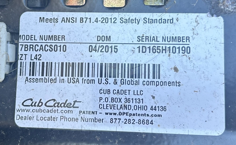 This is a working pull from a lightly-used garage-stored Cub Cadet RZT-L42 zero turn mower with only 190 hours per working hour meter. This assembly fits many model mowers including model RZT-L46 and may fit other mowers. Pics are of the actual assembly for sale and show everything included. Compare part numbers to ensure fit and compatibility or inquire for fast and friendly assistance. The default shipping rate displayed may not be the cheapest rate nor the fastest shipping method available. Click on "See Details" in the shipping section to see all offered UPS and USPS shipping options. Message me for additional info and deals on multiple parts. I'll make sure you get everything you need. I part out complete Cub Cadet and other lawn and garden tractors and zero turn mowers as well. If you don't see a related part you need feel free to message and I'll let you know if I still have it and at what bargain price. If you need only a specific part from any assembly for sale, message me and I'll consider pulling that part for you at a reduced price and reduced shipping cost.